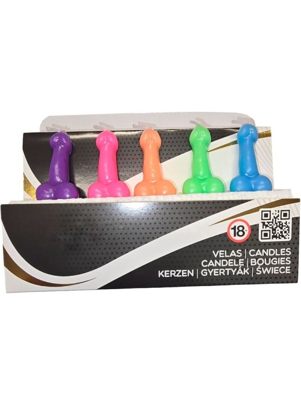 DIABLO PICANTE - BOÎTE DE 5 BOUGIES EN FORME DE PÉNIS DE DIFFÉRENTES COULEURS