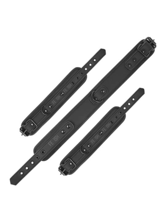 FETISH SUBMISIVE présente cet ensemble de menottes et de poignets en cuir végétalien avec du métal sans nickel ! Enfermez votre amoureux avec ces menottes sexy, efficaces et confortables. Un accessoire classique pour vos jeux de bondage. Ces menottes ont l'esthétique élégante que vous recherchez ainsi qu'une efficacité absolue. Double épaisseur et fini avec une boucle en métal, votre soumis ne pourra pas s'échapper. L'intérieur rembourré garantit qu'ils resteront à l'aise, peu importe combien ils tirent ou combien de temps ils jouent. L'ensemble dispose d'un système de connexion pour immobiliser du cou jusqu'aux mains.Ajustez confortablement l'accessoire de cou et attachez-le aux poignets du dos ou de la poitrine, ils disposent d'une barre d'immobilisation + chaînes ! Ils sont parfaits pour les joueurs de niveau avancé ainsi que pour les débutants. Fabriqué en matériau ; Néoprène, métal sans nickel et cuir Vegan. L'ensemble comprend, poignets + accessoire de cou, union d'immobilisation fixe + chaînes.La collection Fetish Submisive est parfaite pour le BDSM, qualité et résistance adaptées à tous les jeux ! Utilisez ces menottes avec d'autres accessoires de la collection FETISH SUBMISIVE.100% réglable.