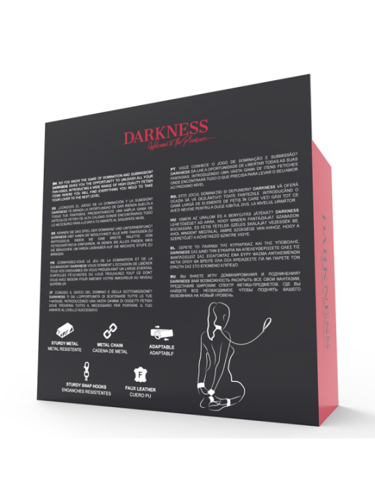 êtes-vous à la recherche d'une combinaison de collier, de menottes et de laisse taille unique, suffisamment solide pour résister aux jeux les plus intenses ? Cherchez pas plus loin. Le collier et les menottes en cuir Darkenes sont confortables, mais ils sont également incroyablement sécurisés, avec des lanières en cuir de qualité supérieure avec des coutures élégantes le long des lanières ! Avec les sangles pour les menottes et les boutons-pression pour le col, l'ajustement de sa taille est très simple et s'adapte à presque toutes les tailles. Le clip sur les supports de chaîne et Fabriqué en CUIR très résistant.LA MARQUEDarkness est une marque nouvelle génération 2020, tous nos matériaux sont d'excellente qualité garantissant que la fabrication compromet un résultat parfait pour les utilisateurs débutants ou avancés qui aiment le monde Fétiche ou bdsm.