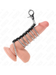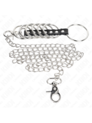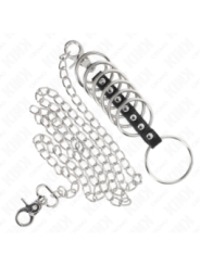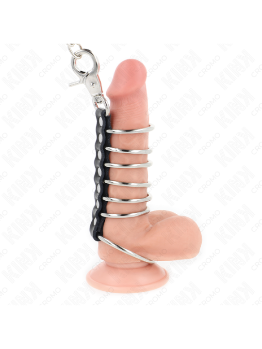 KINK - 7 ANNEAUX PÉNIS EN MÉTAL DE 3,8 CM À 5 CM CONNECTÉS AVEC DU CUIR ET UNE CHAÎNE EN MÉTAL 100 CM