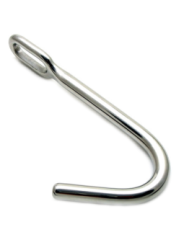 Crochet anal en acier pour les amateurs d'immobilisations ou de suspensions Il mesure environ 1,2 cm d'épaisseur et possède un anneau sur le côté droit pour attacher une corde. Le crochet est en acier très résistant et présente des bords arrondis. La partie insérable mesure environ 7,6 cm. Poids approximatif 300 gr. Ce crochet anal est recommandé uniquement aux utilisateurs expérimentés dans les techniques de bondage et de sécurité de suspension.