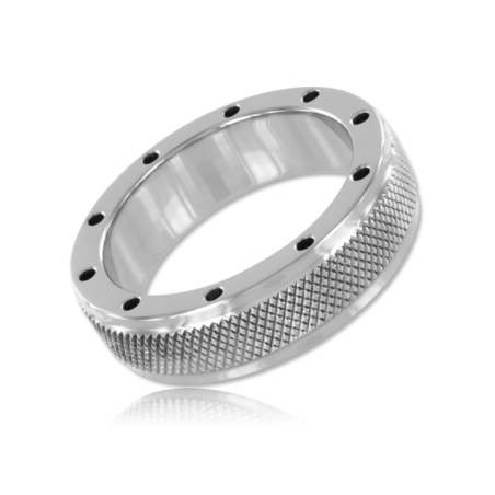 Il n'y aura personne pour vous arrêter avec cet anneau pénien. Il s'adapte facilement à la chaleur du corps et s'adapte très confortablement grâce à sa forme douce et lisse.Profitez d'un temps illimité de plaisir et de satisfaction pour vous et votre partenaire. Fait d'acier. Mesures / 15 mm de large x 50 mm de diamètre. Il dispose de 11 trous pour maintenir la température sous la pression du sexe.Vous pourrez retarder l’éjaculation et améliorer l’érection.Osez le bdsm !