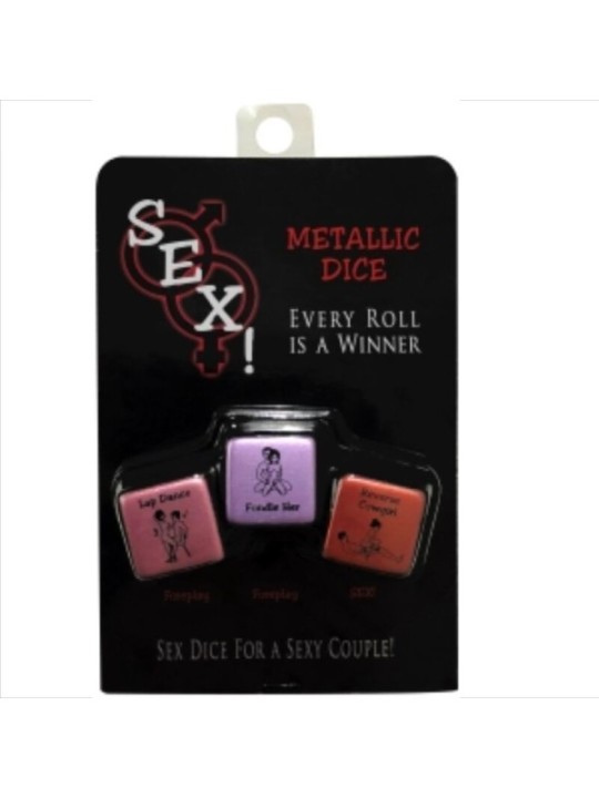 Des dés de sexe pour un couple sexy ! Trois dés aux couleurs métalliques vibrantes pour les préliminaires et les jeux sexuels. à tour de rôle, lancez les dés. Représentez chaque action précédente sur les deux premiers dés. Si un joker est lancé, il ou elle décide quelle action précédente dépend du joker lancé. Si les deux jokers apparaissent, vous gagnez ! Lorsque vous gagnerez, vous pourrez également représenter le troisième dé « SEXE » après le dé du jeu précédent. Le rouleau interprète la façon dont chaque illustration du dé est représentée.