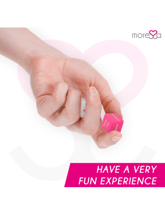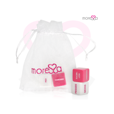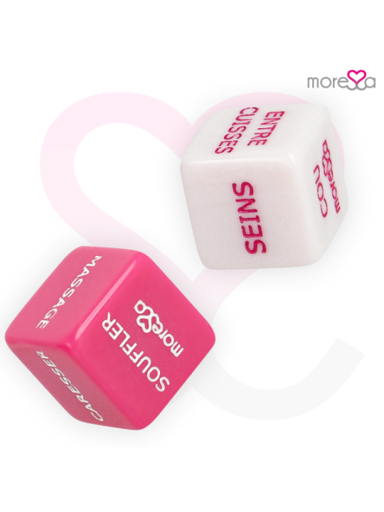 Le dé parfait à la recherche de nouvelles émotions.Un jeu simple mais efficace, offrant des heures érotiques interminables, ces dés sont un jeu divertissant que tout le monde peut gagner !Comprend un petit sac en satin pour garder les dés érotiques en sécurité.Lorsque le baiser et les lèvres sortiront, vous pourrez dire « assez facile ». Tendez la main vers votre amoureux, tendez les bras et prenez-le par les épaules pour poser vos lèvres sur les siennes.Votre partenaire saisit rapidement les dés, les mélange malicieusement et vous les lance de manière ludique. En tombant de votre poitrine, ils atterrissent sur le sol et lisent, mordent et se couvent.En criant d'excitation, votre partenaire devient excité et place sa bouche chaude et humide sur votre cou, puis enfonce lentement et de manière séduisante ses dents dans votre peau. Un doux gémissement de plaisir quitte vos lèvres de manière incontrôlable.Vous demandez à votre amoureux de souffler un lent courant d’air chaud sur les dés pour porter chance. En regardant votre partenaire secouer vigoureusement les dés dans vos mains, vous croisez rapidement les doigts, attendant anxieusement de voir ce qui se passera à votre tour.Alors que le dé blanc tombe de vos mains, vous voyez le dé rose échapper à votre emprise et descendre sur le tapis.Vous pouvez jouer de milliers de façons. LANGUE FRANçAISEContient: 1 dé d'action (couleur rose) 1 dé de localisation (blanc) Sac pratique avec le logo Moressa pour pouvoir les ranger et les emporter où vous voulez pour que la passion n'ait pas de limitesCaractéristiques techniques; 2 cm de longueur 2 cm de large Résine Fabriqué en Europe Matériau sans danger pour le corps Sans Phalatos.Moressa est la marque de référence pour son design, sa qualité et sa technologie. Nous avons développé un produit innovant et pris soin de chaque processus de fabrication pour obtenir le meilleur résultat. Moressa est un symbole d'énergie, de force et de garantie. Acheter un Sextoy Moressa, c'est se sentir reflété dans l'actualité du jour. Chaque Moressa Toy vous transportera vers des sensations différentes. Un résultat inégalé grâce au silicone Premium confortable et aux designs ergonomiques.
