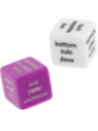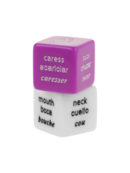 Le dé parfait à la recherche de nouvelles émotions.Un jeu simple mais efficace, offrant des heures érotiques interminables, ces dés sont un jeu divertissant que tout le monde peut gagner !Comprend une petite pochette en satin pour garder les dés érotiques COVERME en sécurité. Lorsque le baiser et la bouche sortent, vous pouvez dire « assez facile ». S'étirer vers votre amoureux, tendre les bras et le prendre par les épaules pour capturer vos lèvres sur les siennes.Votre partenaire saisit rapidement les dés, les mélange malicieusement et vous les lance de manière ludique. Lorsqu'ils tombent de votre poitrine, ils atterrissent sur le sol et lisent, mordent et se couvent. En criant d'excitation, votre partenaire s'excite et pose sa bouche chaude et humide sur votre cou, puis enfonce lentement et de manière séduisante ses dents dans votre peau. Un doux gémissement de plaisir sort de vos lèvres de manière incontrôlable.Vous demandez à votre amoureux de souffler un lent courant d’air chaud sur les dés pour porter chance. En observant votre partenaire, tandis que vous secouez vigoureusement les dés dans vos mains, il croise rapidement les doigts, attendant anxieusement de voir ce qui sortira à votre tour.Alors que le dé blanc tombe de vos mains, vous voyez le dé rose vous échapper et descendre sur le tapis. Vous pourrez exécuter mille formes de jeu.Contient:	1 dé d'action (violet)	1 dé de placement (couleur blanche)	Sac pratique avec le logo COVERME pour pouvoir les ranger et les emporter partout où vous voulez pour que la passion n'ait pas de limitesCaractéristiques techniques;	2 cm de longueur	2 cm de large	Résine	Fabriqué en Europe	Matériau sans danger pour le corps	Sans Phalatos.Textes donnés 1	Cou	Oreille	Cul	Bouche	Mamelon	DosTexte de dés 2	Mordre	Lécher	Caresser	Chatouiller	Baiser	Sucer.Langues ; Anglais, français et espagnol