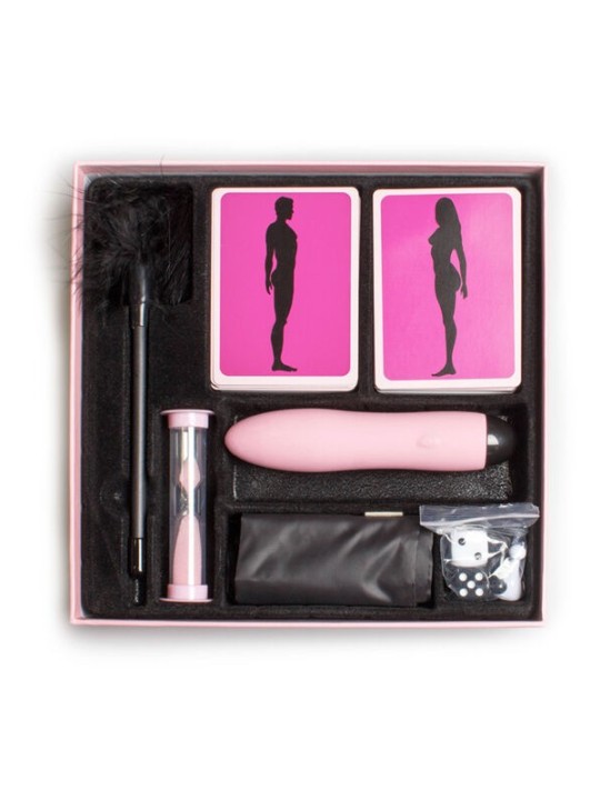 LE JEU PARFAIT POUR DéMARRER LA PASSION !Le jeu contient : 176 cartes de test : 88 cartes pour lui 88 cartes pour elle 1 plateau de jeu 2 pions 2 dés 1 vibrateur 1 chatouilleur de plumes 1 retenue en soie 1 sablierRègles du jeu : Tout d’abord, choisissez la boisson que chaque joueur boira au cours de la partie. Le jeu se compose de 88 cartes pour chaque joueur, réparties en 4 couleurs différentes en fonction de l'intensité des tests, qui doivent être utilisées selon l'ordre des couleurs sur le plateau. L'homme utilisera les cartes marquées MAN SILHOUETTE et la femme utilisera les cartes marquées WOMAN SILHOUETTE.Une fois l'épreuve indiquée sur la carte choisie terminée, la carte doit être placée en bas de la pile. Les différents éléments fournis avec le jeu doivent être utilisés lorsque le test l'exige. Au cours du jeu et dans tous les tests dans lesquels les vêtements sont enlevés, ils seront toujours choisis par l'adversaire et doivent être des vêtements visibles (par exemple, il n'est pas valable de choisir des sous-vêtements si le pantalon ou la jupe n'ont pas été précédemment supprimé).Lorsque vous tombez dans la boîte avec le dessin d'un verre, vous devez prendre une gorgée de votre boisson, embrasser votre partenaire et immédiatement prendre une carte pour procéder au prochain test. Si celui qui joue oublie d'embrasser son partenaire et que l'autre joueur le lui rappelle, celui qui est tombé dans la boîte perdra un vêtement qui sera préalablement choisi par son rival. Si les deux joueurs tombent dans la même case, ils doivent s'embrasser immédiatement, mais le dernier à le faire perdra un vêtement, toujours choisi par son partenaire.Sur les cartes où apparaît XXX, le sablier (60 secondes) doit être utilisé pour chronométrer le test indiqué. Une fois que tout est prêt, le sablier sera retourné et le test commencera. Pour entrer dans les cases de position du Kamasutra, un nombre exact sur le dé n'est pas requis. Une fois qu'un des joueurs a atteint ces cases, vous pouvez simplement attendre que l'autre joueur arrive et ainsi pouvoir commencer ensemble.Dans les cases avec les dessins des positions du Kamasutra (qui sont divisées en deux colonnes), chacun doit avancer dans la sienne. Le dessin indique la position sexuelle que chacun doit adopter pour faire l'amour avec son partenaire. Chaque position doit être exécutée à l'aide du sablier pour chronométrer. Une fois le temps écoulé, chaque joueur lancera à nouveau les dés pour effectuer la position suivante. Le joueur qui décide de continuer après la fin du temps imparti ou qui atteint l'orgasme en premier sera le perdant.Début du jeu : Les deux joueurs doivent lancer le dé et celui qui obtient le chiffre le plus élevé commence. En cas d'égalité, le premier qui enlèvera un vêtement débutera. Le joueur qui commence avancera d'autant de cases que le nombre commencé par le dé, en partant de la case de sortie indiquée par une flèche et en avançant dans le sens des aiguilles d'une montre.IL EST RECOMMANDé D'AVOIR : Une boisson fraîche Glaçons Rouge à lèvres Huile de massage et lubrifiant Crème ou autre aliment comestible Désir de s'amuser et beaucoup de passion