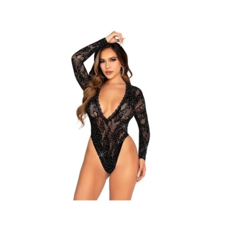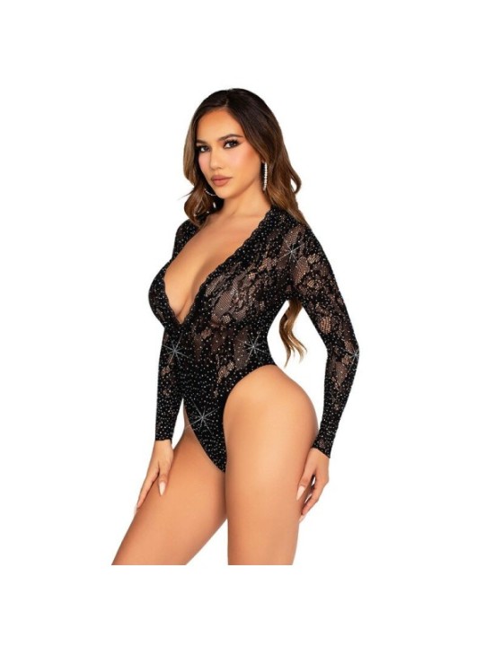 LEG AVENUE - BODY EN DENTELLE ET MANCHES LONGUES AVEC DIAMANTS NOIR TAILLE UNIQUE