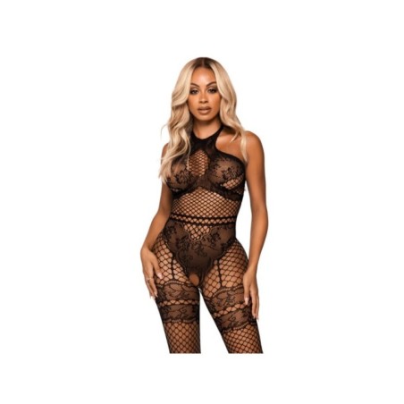 LEG AVENUE - NET HALTER BODYSTOCKING TAILLE UNIQUE - NOIR