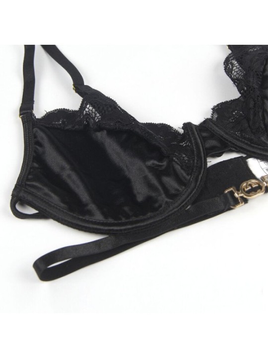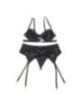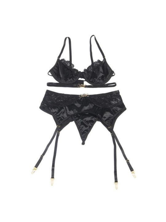 SUBBLIME - ENSEMBLE 3 PIÈCES SOUTIEN-GORGE + STRING + JARRETIÈRE DENTELLE NOIR S/M