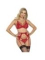SUBBLIME - ENSEMBLE 3 PIÈCES SOUTIEN-GORGE + STRING + JARRETIÈRE DENTELLE ROUGE S/M