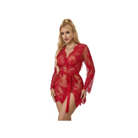 SUBBLIME - 953775 CHEMISIER DE NUIT DENTELLE + STRING ROUGE S/M