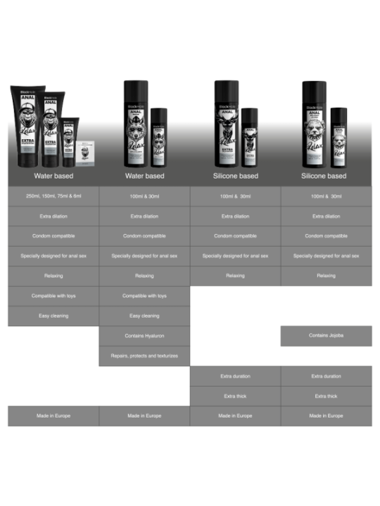 Le Gel Anal Relaxant au Jojoba de Black Hole est un gel lubrifiant premium spécialement formulé pour améliorer le confort et la sécurité lors des rapports anaux. Grâce à sa base en silicone longue durée et à son contenu en huile de jojoba, ce produit offre non seulement une lubrification supérieure, mais contribue également à détendre délicatement la zone intime, pour une expérience plus agréable et sans inconfort. Découvrez un plaisir sans limite avec le Gel Anal Relaxant au Jojoba de Black Hole. Disponible en deux formats pratiques (100 ml et 30 ml), ce lubrifiant est le partenaire idéal pour les jeux à la maison comme pour les aventures en déplacement. CARACTéRISTIQUES DU JOJOBA RELAXANT ANAL BLACK HOLE : Relaxant Anal : Formulé pour détendre les muscles de la région anale, facilitant le confort et réduisant la tension, offrant une expérience plus agréable et sans inconfort. Base en silicone de haute qualité : Offre une lubrification ultra-longue durée sans nécessiter de réapplications fréquentes. Idéal pour le sexe anal grâce à sa texture soyeuse et longue tenue. Enrichi en huile de jojoba : Connue pour ses propriétés apaisantes et émollientes, elle aide à détendre la zone intime et à améliorer l'élasticité de la peau, favorisant une pénétration plus confortable. Compatibilité totale : Peut être utilisé en toute sécurité avec les préservatifs en latex et les jouets sexuels, y compris ceux en silicone, grâce à sa formule testée dermatologiquement. Application facile : Appliquez simplement une petite quantité sur la zone souhaitée et massez doucement pour une lubrification immédiate et efficace. Idéal pour : Couples cherchant à améliorer le confort et le plaisir lors des rapports anaux. Les personnes à la peau sensible qui apprécient les ingrédients apaisants et non irritants. Les utilisateurs de jouets sexuels qui ont besoin d'une lubrification longue durée. Tailles disponibles : 100 ml / 30 mlLe Détente Anale au Jojoba de Black Hole est le complément idéal pour ceux qui souhaitent ajouter une touche de détente et de confort à leurs moments intimes. Grâce à sa formule innovante et à ses fonctionnalités pratiques, ce produit promet une expérience unique et profondément satisfaisante à chaque utilisation, améliorant la qualité de vos relations et augmentant le plaisir mutuel. Sa texture soyeuse et sa résistance au dessèchement en font un excellent choix pour les débutants comme pour les utilisateurs expérimentés. Il ne nécessite pas de réapplications fréquentes, ce qui le rend idéal pour les relations prolongées ou l'utilisation avec des sextoys. TROU NOIRNotre fabrication est basée sur l'expérience et l'importance d'essayer de nouvelles choses et d'élargir ses horizons sexuels. Le sexe anal, éternellement tabou, est désormais socialement acceptable et pratiqué par des millions de personnes. Ce produit a été développé pour faciliter l'initiation au sexe anal.BLACK HOLE est une marque de produits intimes innovante et leader du marché, qui se consacre à offrir des expériences de plaisir et de confort grâce à ses produits de haute qualité. Axée sur la satisfaction client, BLACK HOLE se spécialise dans la création de solutions qui améliorent l'intimité et le bien-être personnel. BLACK HOLE allie innovation, qualité et sécurité pour proposer des produits intimes qui enrichissent la vie de ses clientes. Axée sur la création d'expériences agréables et confortables, BLACK HOLE s'est imposée comme un leader fiable et respecté sur le marché des produits intimes.
