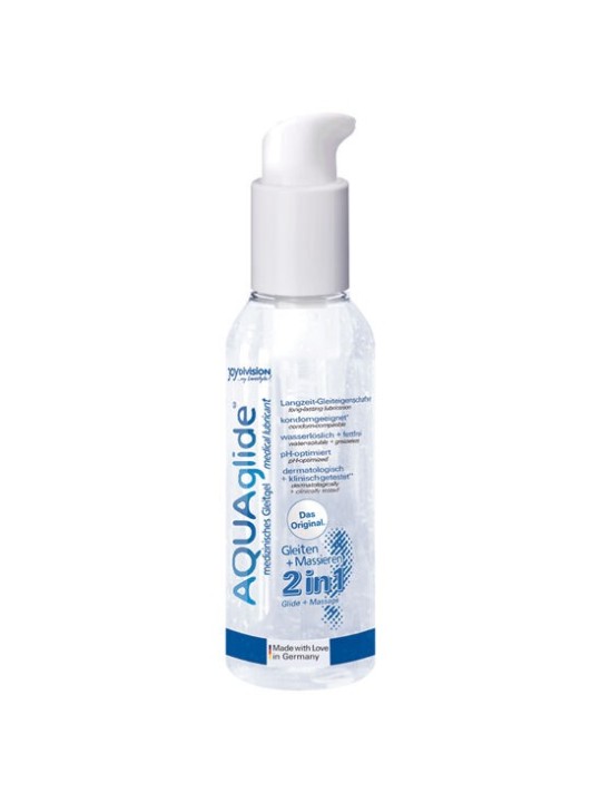 Le complément idéal pour des heures de plaisir sensuel !Agréable et à base d'eau, l'AQUAglide Original offre une solution légère et fiable lorsque la lubrification naturelle du vagin est insuffisante. Mais même sans ce problème, il procure une plus grande intensité de sensation et d'excitation lors des ébats amoureux. Et AQUAglide offre de nombreux avantages par rapport aux autres lubrifiants. Vous pouvez l'utiliser comme gel de massage de haute qualité, par exemple, ou comme complément idéal lorsque vous utilisez des préservatifs en latex ou nos séduisants jouets Lovestyle. Ou pimentez le sexe oral avec les variétés de parfums et de saveurs délicieusement délicieuses telles que la fraise, la cerise, la banane, l'exotique et la framboise.Peu importe comment vous l'utilisez - avec AQUAglide, vous et votre partenaire atteindrez de nouveaux sommets de plaisir pendant l'amour ! Ceci est confirmé par tous les hommes et femmes qui ont fait d'AQUAglide l'un des lubrifiants les plus populaires d'Europe depuis plus de dix ans maintenant. Et puis bien sûr les excellents résultats des tests de nombreuses associations de consommateurs bien connues !Les nombreux avantages d'AQUAglide :? approuvé comme produit de qualité médicale? soluble dans l'eau et sans graisse? soumis à un contrôle qualité constant? convient également aux rapports oraux? possède des propriétés lubrifiantes durables? pH optimisé? très efficace, avec un peu de chemin? FABRIQUé EN ALLEMAGNE? soumis à des tests médicaux et dermatologiques réguliers? convient pour une utilisation avec des préservatifs? disponible dans les pharmacies, les détaillants érotiques bien approvisionnés et via Internet Original AQUAglide 2 en 1 Lubrifiant et gel de massage, sans odeur 125ml