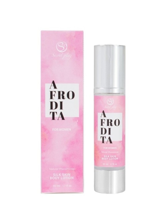 La lotion corporelle féminine Aphrodite Silk Skin, avec un attractif sexuel naturel extrait de la truffe, met en valeur votre attrait, augmente votre confiance et fait de vous une personne plus excitante, séduisante et désirée aux yeux des autres. Les particules biologiques de la truffe, avec leur arôme, stimulent naturellement le désir sexuel : une attraction irrésistible pour n'importe qui.Connaissiez-vous les nombreuses utilisations de notre peau de soie ? -Pour hydrater la peau et la laisser douce -Pour le massage, il est idéal pour un massage au corps à corps -Sérum capillaire -Pour le mettre sous le maquillage -Pour sublimer les tatouages-Pour le mettre sur les frottements, en particulier ceux qui se produisent dans l'entrejambeMODE D'EMPLOI: Après avoir étalé une fine couche sur la peau, il acquiert un toucher et une texture, en apparence, égaux à la soie. Une invitation à la sensualité et au désir.PRéCAUTIONS : Produit cosmétique à usage externe uniquement. Ne pas utiliser en cas d'hypersensibilité ou d'allergie à l'un des ingrédients. En cas d'irritation, cesser l'utilisation. Ne pas appliquer sur le contour des yeux ou sur les plaies. Ne pas manger. Garder hors de la portée des enfants. Conserver dans un endroit frais et sec à l'abri du soleil. Conteneur avec système "Airless" Application facile Contenance : 50 ml Produit cosmétique à usage externe uniquement Arôme doux de caramel Non testé sur les animaux Pour femme Fabriqué en Espagne