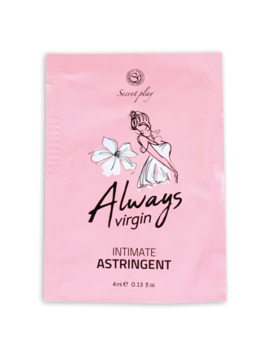 Aimeriez-vous revivre le sentiment que vous avez eu la première fois ?"Always Virgin" est un astringent intime composé d'ingrédients naturels qui procure une sensation de resserrement des muscles vaginaux, intensifiant le plaisir dans vos relations comme si c'était la première fois.Mode d'emploi : Désinfectez la zone interne et massez dans les parois vaginales jusqu'à ce que vous sentiez une absorption complète 15 minutes avant le rapport sexuel.PRéCAUTIONS : Produit cosmétique à base d'astringents naturels. Ne pas utiliser en cas d'hypersensibilité ou d'allergie à l'un des ingrédients. En cas d'irritation, cesser l'utilisation. Ne pas appliquer sur le contour des yeux ou sur les plaies. Ne pas manger. Garder hors de la portée des enfants. Conserver dans un endroit frais et sec à l'abri du soleil. Format sachet Contenance : 4 ml Convient aux végétaliens Non testé sur les animaux 100% naturel Fabriqué en Espagne