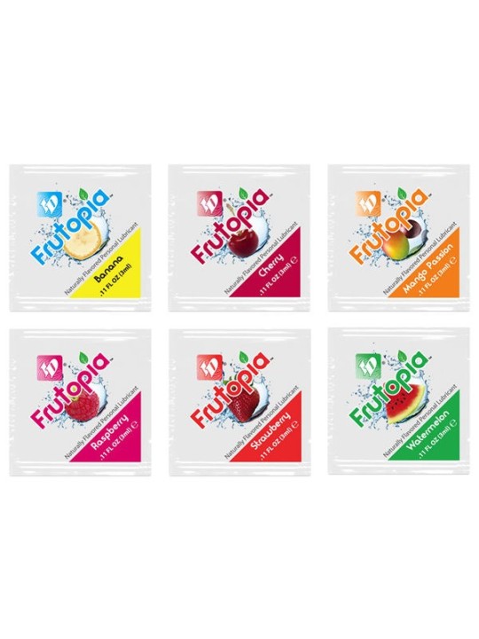 Un régal entièrement naturel ! Frutopia ® – c'est l'état d'extase dans lequel vous serez après avoir goûté aux arômes naturels de notre dernière gamme de lubrifiants ID ®. Frutopia ® vous offre, à vous et à votre partenaire, une expérience délicieuse à laquelle aucun autre lubrifiant aromatisé ne peut se comparer. Ce lubrifiant personnel vous offrira une expérience au lit que vous n'oublierez pas de sitôt lorsque vous vous retrouverez dans des situations toujours plus délicieuses. Avec tant d'autres lubrifiants aromatisés sur le marché aujourd'hui, vous vous demandez peut-être pourquoi vous devriez choisir ID ® ; voici quelques raisons qui nous distinguent des autres.Notre formule à base d'eau est naturellement sucrée, ne contient pas de sucres et ne contient aucun colorant artificiel. La saveur est si fraîche que vous aurez l’impression de croquer dans un fruit frais. En fait, Frutopia ® est même considéré comme végétalien car nos ingrédients sont extraits de sources végétales naturelles. Essayer quelque chose de nouveau n'a jamais été aussi savoureux. De plus, Frutopia ® est un lubrifiant respectueux du latex. Cela signifie que vous pouvez l’utiliser sans souci avec des produits en latex.ID ® est très fier d'avoir créé une expérience gustative aussi révolutionnaire pour le plaisir de tous nos clients. Amusez-vous avec vos rencontres intimes et ajoutez ce lubrifiant à votre collection, vous serez heureux de l'avoir fait. Ajoutez un peu de saveur à la chambre avec ce délicieux lubrifiant aromatisé aux fruits.Notre gamme Frutopia ® est disponible dans notre sexy 3,4 oz. Flacon pompe verrouillable pour une application facile. Que vous recherchiez une explosion d'agrumes ou une bouchée rafraîchissante, vous trouverez cela et bien plus encore avec nos six délicieuses saveurs : Framboise, Mangue Passion, Fraise, Banane, Pastèque et Cerise. L'assortiment coloré de Frutopia ® vous fera faire bien plus que simplement vous lécher les lèvres. Frutopia ®, aucun lubrifiant aromatisé ne sera plus jamais pareil.