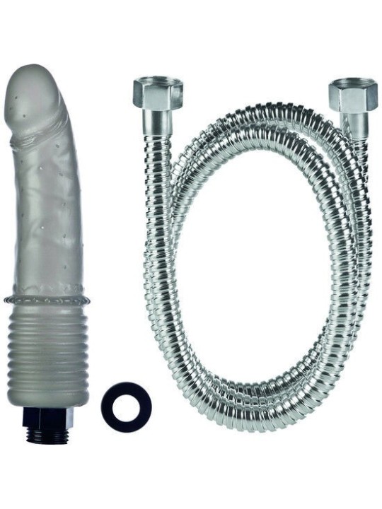 Gode nettoyant pour la douche en forme de pénis, en gélatine, avec des dizaines de petits trous par lesquels sort l'eau sous pression. • Il est équipé d'une entrée spéciale qui augmente la force de l'eau. • S'enfile sur n'importe quel flexo standard. • Profitez d'un massage doux pendant que vous pénétrez votre corps ou celui de votre partenaire avec ce gode. • Il peut également être utilisé comme lavement. Une fois que l'eau commence à sortir, vous pourrez ressentir un massage doux et pulsé, lui donnant une sensation comme vous n'en avez jamais ressentie auparavant. Comprend un col de cygne de 110 cm. Dimensions : 15 cm x 3 cm.