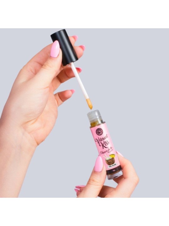 Avez-vous déjà vu un brillant à lèvres qui produit des ondes vibratoires ? Avez-vous déjà pensé qu'un brillant à lèvres entrerait dans votre vie et vous ferait profiter encore plus du sexe oral et des baisers ?Avec le brillant à lèvres Vibrant Kiss Strawberry Gum, vous pouvez vivre des sensations de plaisir inimaginables pour vous et votre amoureux. Ses ondes vibratoires produisent une agréable sensation de picotement qui contribue à la stimulation de vos sens et augmente la sensibilité et le plaisir. Il peut être utilisé lors de relations sexuelles orales ou simplement pour embrasser. Plaisir à deux. Conditionnement : 6 gr Saveur : Piña Colada 100% comestible Base glycérine Compatible avec les préservatifs et les jouets Agiter avant utilisation 100 % sans cruauté Fabriqué en EspagneRéférence : 3687 EAN : 8435097836878 Poids : 0,02 kg / 20 g Dimensions : 2 (Ø) (diamètre) x 10 (hauteur)Ingrédients:Piña colada aromatisée, sucrée et sucrée.Sirop de Piña Colada (sucre, eau, arôme naturel de noix de coco, concentré de jus de citron, émulsifiants gomme arabique, E445, colorant E161B, jus de fruits 23%, avec 11% de jus d'ananas), glycérine E422, extrait d'Acmella Oleracea, colorant E102, stabilisant E415, Conservateur E202, Hydratant E1520. Valeur nutritionnelle : 935 KJ/ 224 Kcal Gras/Saturés : 0,07g/0g Glucides/Sucres : 54,7g/54,6g Protéines : 0,07g Sel : 0,02gComment utiliser:Appliquez sur les lèvres et en quelques secondes vous remarquerez une vibration stimulante.Précautions:-Agitez avant utilisation.-Ne pas utiliser en cas d'hypersensibilité ou d'allergie à l'un des ingrédients.-En cas d'irritation, cesser l'utilisation.-Ne pas appliquer sur le contour des yeux ou sur les plaies.-Ne pas ingérer.-Tenir hors de portée des enfants.- Conserver dans un endroit frais et sec et à l'abri du soleil.