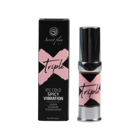 Bienvenue dans votre PROCHAINE EXPéRIENCE EXTRêME !Le gel intensificateur de plaisir unisexe Triple X composé d'ingrédients naturels combine 3 effets en 1. Il produit un effet froid, suivi d'un effet feu-épicé et se termine par une vibration, qui est le déclencheur parfait. Il permet un plus grand plaisir dans les relations intimes et une sensation unique.MODE D'EMPLOI : Appliquer une petite quantité sur la zone intime avec un léger massage. Laisser agir quelques minutes. Appliquez seulement quelques gouttes avec un massage doux, après 30 secondes, vous commencerez à remarquer les effets ... froids, épicés et pour mettre fin à la vibration, qui est le déclencheur parfait !!! Osez vivre cette expérience unique.L'effet dure environ 20 minutes et peut être réappliqué si nécessaire.PRéCAUTIONS : Produit cosmétique à usage externe uniquement. Ne pas utiliser en cas d'hypersensibilité ou d'allergie à l'un des ingrédients. En cas d'irritation, cesser l'utilisation. Ne pas appliquer sur les yeux ou les plaies. Ne pas manger. Garder hors de la portée des enfants. Conserver dans un endroit frais et sec à l'abri du soleil. Conteneur avec système "Airless" Contenance : 15 ml Convient aux végétaliens Non testé sur les animaux 100% naturel Fabriqué en Espagne