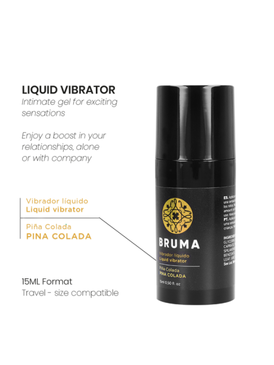 Le vibromasseur liquide saveur pina colada de la marque BRUMA est un gel intime conçu pour procurer des sensations excitantes et agréables lors de vos moments les plus intimes. Ce produit innovant est conçu pour vous donner un boost supplémentaire dans vos relations, que ce soit seul ou en entreprise, rendant chaque expérience unique et mémorable. CARACTéRISTIQUES DU VIBRATEUR LIQUIDE SAVEUR PINA COLADA BRUMA : Vibrateur liquide : La formule spéciale de ce gel permet une sensation de vibration qui intensifie le plaisir, ajoutant une nouvelle dimension à vos jeux intimes. Profitez d'un boost dans vos relations, seul ou en compagnie : Parfait pour une utilisation en couple ou seul, ce vibromasseur liquide de BRUMA peut améliorer l'intimité et augmenter le plaisir mutuel. Saveur pina colada : La délicieuse saveur de pina colada ajoute une touche tropicale et rafraîchissante à vos moments intimes, rendant l'utilisation du gel encore plus agréable. Format 15 ml - Voyage : Taille compatible : Avec un contenant compact de 15 ml, il est parfait à emporter partout avec vous. Son format voyage vous permet de profiter de ses bienfaits à tout moment et en tout lieu. Distributeur anti-goutte : équipé d'un distributeur anti-goutte, il garantit que vous obtenez la quantité parfaite sans gaspillage, en maintenant l'hygiène et la commodité d'utilisation. Quantité parfaite et mesurée pour une application : Chaque application est parfaitement dosée pour garantir la bonne quantité pour chaque utilisation, facilitant ainsi une expérience sans tracas. Formule ultra glissante : Sa formule a été développée pour offrir une texture ultra glissante qui facilite son application et améliore la sensation lors de l'utilisation. Application douce et longue durée : Conçu pour être doux pour la peau, le gel BRUMA s'applique facilement et offre une tenue longue durée, garantissant que les sensations sont maintenues plus longtemps sans avoir besoin de réapplications constantes.Le vibromasseur liquide au goût de pina colada de BRUMA est le complément parfait pour celles qui cherchent à ajouter une touche supplémentaire d'excitation et de plaisir à leurs moments intimes. Avec sa formule innovante et ses fonctionnalités pratiques, il promet de transformer chaque utilisation en une expérience unique et profondément satisfaisante. BRUMABRUMA est une marque leader dans le monde des produits pour adultes, reconnue pour son engagement envers la qualité et la satisfaction de ses clients. Spécialisée dans la création de produits conçus pour améliorer l'intimité et le plaisir des expériences adultes, BRUMA est devenue réputée pour son orientation vers l'innovation et l'excellence.Le gel ultra glissant de BRUMA incarne l'engagement de la marque à fournir des solutions intimes de qualité supérieure. Ce gel est soigneusement formulé pour offrir une lubrification exceptionnellement douce et durable, améliorant le confort et la connexion dans les moments les plus intimes.Avec BRUMA , vous pouvez être sûr que vous choisissez des produits de haute qualité conçus pour améliorer votre bien-être intime. Que vous exploriez des aventures individuelles ou partagées, le gel ultra-glissant de BRUMA vous offre une expérience de glisse et de douceur unique qui vous permet de profiter pleinement de vos moments sensuels. .