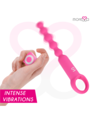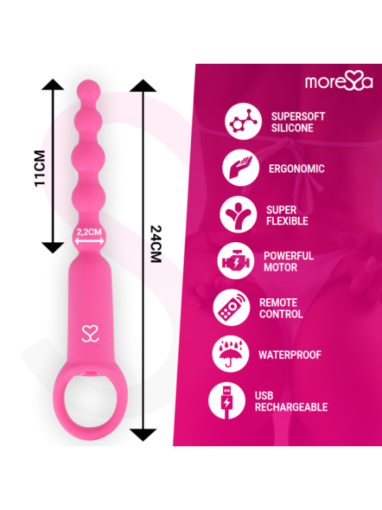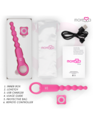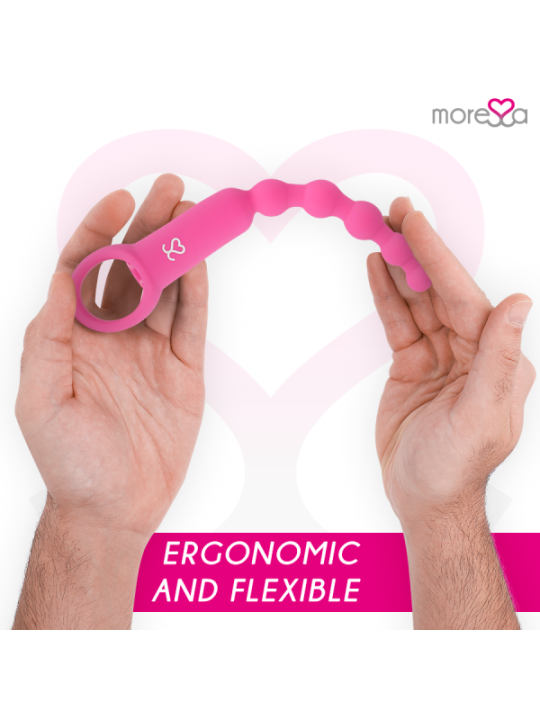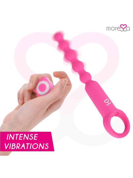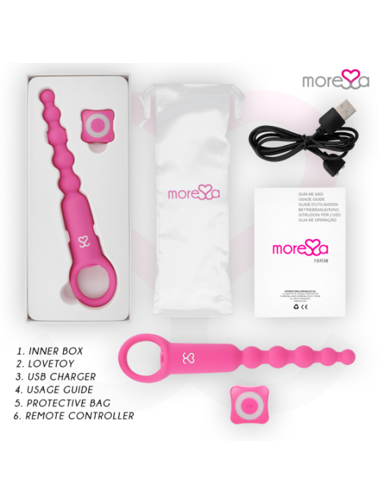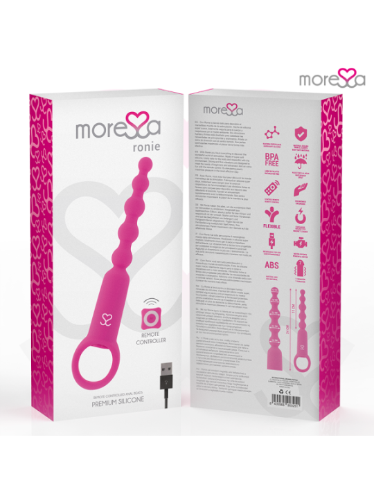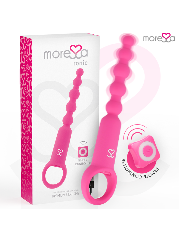 Ronie est un vibromasseur télécommandé qui stimule tous vos sens anaux et vaginaux : un objet élégant et simple, toujours prêt à vous plaire sans préavis. Incorporez des perles à vos jeux amoureux et plongez avec Amoressa Ronie Beads dans un univers d'aventures anales sensuelles. Que vous les utilisiez dans vos jeux en solo ou que vous les intégriez à vos moments de plaisir en compagnie : avec ces sources de plaisir sensuelles vous passerez un bon moment, puisque ce couple sensuel vient vous rendre heureux, vous et votre caverne sombre.Et comme d'habitude avec MORESSA, la forme et la fonction s'unissent pour permettre un contrôle maximal dans ses différents modes de stimulation. Avec une structure montante et des extrémités arrondies, ces chaînes en 5 pièces sont idéales pour les explorateurs du plaisir anal et les débutants en sexe anal. Vivez une sensation de chatouillement excitante lorsque vous retirez la chaîne boule après boule et stimulez votre porte arrière de manière passionnée. Grâce à sa boucle pratique, vous pourrez vous lancer dans votre aventure en toute sérénité. Comme tous les objets de plaisir MORESSA, Ronie est conçu pour procurer une joie physique intense et une paix spirituelle absolue en toute situation et en toutes circonstances. Fabriqué en silicone médical, approuvé par la FDA et sans phtalates, Ronie offre 1,5 heure de vibrations pratiquement silencieuses après un temps de charge de seulement 1 heure.Avec la télécommande pratique, vous pouvez contrôler confortablement les vibrations et décider qui peut prendre les décisions. Pour des aventures folles, laissez le commandement à votre partenaire/amant et laissez-le prendre le contrôle. Afin que vous puissiez profiter longtemps de votre nouvel ami, il est recommandé d'utiliser un lubrifiant à base d'eau au toucher aquatique lors de vos jeux les plus humides. De cette façon, vous protégez le matériau et la surface reste soyeuse. Vous pouvez laver votre jouet très facilement avec de l'eau et du savon doux. Pour une hygiène plus approfondie, utilisez également un nettoyant désinfectant spécial pour sextoys comme le Waterfeel ou le nettoyant pour jouets Nina kikí. Haute performance; 7 modes de vibrations Entièrement rechargeable ; Plus de pouvoir Fabriqué en silicone médical et ABS : respectez votre corps Sans phtalates Silencieux, moins de 60 décibels. Matériau sans danger pour le corps Rechargeable par USB magnétique avec chargeur inclus. Catégorie IPX7 submersible / Convient pour la douche ou le Spa Commande rétroéclairée avec lumières LED Certificat; Approuvé par la FDA.PorterLe vibromasseur est rechargeable et permet une manipulation confortable, sans câbles gênants avec un chargeur magnétique. Avant de l'utiliser pour la première fois, vous devez le charger complètement.Attention : le premier processus de charge peut prendre jusqu'à trois heures. éliminationL'élimination des appareils électroniques doit être effectuée conformément à la réglementation sur les déchets dangereux en vigueur dans l'Union européenne et les autres pays européens ou selon les réglementations locales. Respecter les règles d'élimination des déchetsSpécifique à votre pays et en cas de doute, renseignez-vous auprès de votre revendeur sur les options d'élimination. ContenuL'ouverture d'une boîte de produits MORESSA est une exclusivité. La satisfaction est notre objectif, c'est pourquoi nous avons soigné chaque détail. Ronnie Câble de chargeur magnétique Télécommande Sac pour le ranger après utilisation. Manuel de l'UtilisateurMoressa est la marque de référence pour son design, sa qualité et sa technologie. Nous avons développé un produit innovant et pris soin de chaque processus de fabrication pour obtenir le meilleur résultat. Amoressa est un symbole d'énergie, de force et de garantie. Acheter un Sextoy Moressa, c'est se sentir reflété dans l'actualité du jour. Chaque jouet Amoressa vous transportera vers des sensations différentes. Un résultat inégalé grâce au silicone Premium confortable et aux designs ergonomiques.