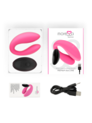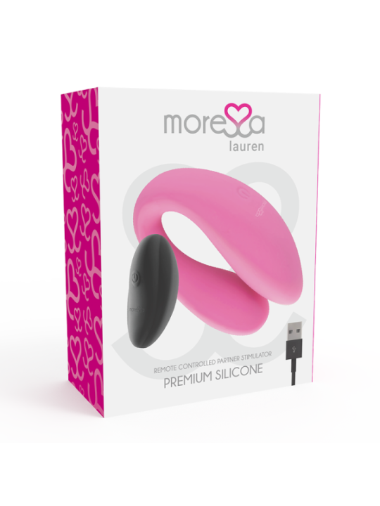 Permettez à Lauren de Moressa d'associer simultanément vos points sensibles au pur plaisir !à première vue, ce double vibromasseur diablement créatif semble être utilisé pour un usage individuel uniquement. Cependant, ce jouet multifonctionnel peut être utilisé pendant les rapports sexuels et a le potentiel de plaire aux deux partenaires pour une expérience améliorée.Stratégiquement placés sur la baguette de stimulation vaginale et le stimulateur anal, les deux moteurs puissants mais silencieux procurent un plaisir intense. Que vous ayez envie de taquineries sans fin ou de pénétration et de satisfaction totales, explorez les 10 modes de vibration. Choisissez parmi une multitude de réglages lents et réguliers, des secousses rapides des orteils ou des impulsions douces et sporadiques.Entièrement recouverte de silicone à 100 %, la peau lisse et soyeuse de ce jouet vibrant à double moteur est hypoallergénique, sûre et douce au toucher.Le fond épais, rond et bulbeux est texturé avec des courbes et lisse pour une insertion et une récupération faciles. Branchez le câble USB inclus dans le port situé à l'arrière de Lauren pendant 70 minutes pour profiter de 40 minutes de lecture ultra-satisfaisante.Le jouet double pénétration Moressa est 100% étanche IPX72 MOTEURS POUR UN DOUBLE BONHEURLauren garantit des moments inoubliables et partagés : pendant les rapports sexuels, le vibromasseur en forme de U s'insère simplement pour que les deux parties puissent profiter des vibrations intenses. Tandis qu'une tige stimule votre clitoris de l'extérieur, l'autre côté du jouet assure une tension séduisante au sein de son sceau d'amour. Les deux extrémités vibrent avec la même puissance grâce aux deux moteurs. La tige interne stimule à la fois votre point G et votre meilleure pièce lorsque vous l'allumez et l'éteignez.Il peut être contrôlé sans fil avec la télécommande incluse, rendant vos expériences sensuelles plus créatives et excitantes.Caractéristiques; 100% silicone doux et soyeux Mesures; 85*38/85*34mm Ne pèse que 120 grammes 10 modes de vibrations Temps de charge 70 minutes pour 40 minutes de vibrations intenses. Catégorie IPX7 submersible Rechargeable via USB.MATéRIEL ET ENTRETIENLe matériau Moressa, doux pour la peau, est non poreux et donc très hygiénique. La texture douce et flexible garantit que le silicone glisse facilement et facilement. Absorbe et stocke rapidement la chaleur de votre corps. Pour l'utilisation de lubrifiant, nous recommandons un lubrifiant à base d'eau Waterfeel. Ceci est doux pour le matériau et garantit qu'il conserve sa texture pendant longtemps. Après utilisation, nettoyez-le avec un nettoyant pour jouets à sensation d'eau ou du savon au pH neutre et de l'eau tiède pour un nettoyage parfait.Mais ce n'est pas tout, jouez avec une garantie car nous vous offrons 2 ans de garantie pour que votre jouet dure longtemps.