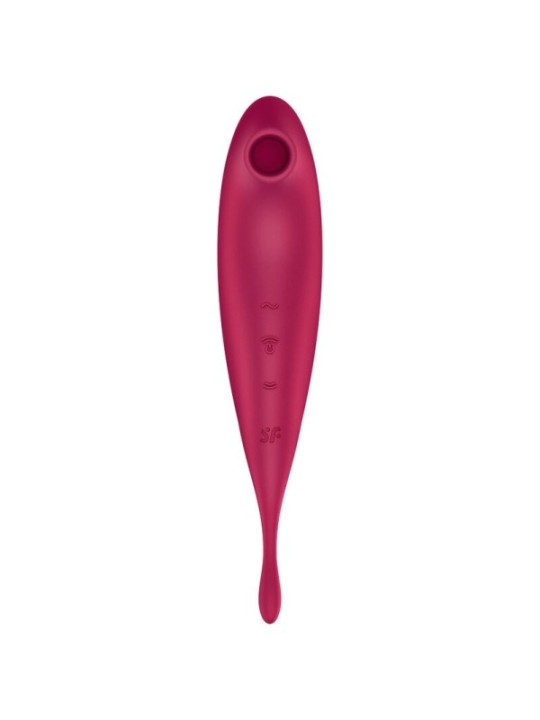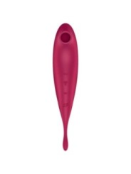 êtes-vous à la recherche d’un vrai tout-terrain ? Alors vous devriez connaître l'application Twirling Pro Connect : le vibrateur à ondes de pression contrôlé par l'application avec pointe de stimulation peut être utilisé des deux côtés et impressionne par 2 fonctions contrôlables séparément !Informations sur le produit "Satisfyer Twirling Pro+" Stimulation clitoridienne par ondes de pression et stimulation érogène par vibrations Compatible avec l'application gratuite Satisfyer - Disponible sur iOS et Android Fabriqué en silicone de qualité médicale super doux et respectueux de la peau, lisse au toucher et extrêmement hygiénique Grâce à son extérieur étanche (IPX7), cet appareil de bien-être sexuel peut être utilisé en toute sécurité dans l'eau et est facile à nettoyer. Garantie 15 ans 2 moteurs contrôlables séparément 11 intensités d'ondes de pulsation d'air + 12 programmes de vibrations Peut également être utilisé sans l'application Les programmes prédéfinis peuvent être modifiés L'application offre une gamme infinie de programmes Silicone respectueux du corps étanche (IPX7) Mode murmure Batterie aux ions lithium Câble de chargement magnétique USB inclus Facile à nettoyerUn plaisir infini avec le Satisfyer Twirling Pro+Le dessus du jouet agit comme un vibrateur à ondes de pression et dorlote votre clitoris avec des ondes de pression sensuelles dans 11 intensités prédéfinies. L'embout ovale situé à l'extrémité inférieure de la tige étroite est idéal pour une stimulation ciblée de tout le corps : utilisez l'embout de stimulation circulante pour stimuler toutes les zones érogènes, comme les perles de plaisir, les mamelons ou l'anus. Vous disposez de 12 programmes de vibrations, allant de doux à intense.La forme droite de la tige tient bien dans la main lors de l'utilisation. Le silicone soyeux et doux pour la peau du vibromasseur est particulièrement flexible et glisse doucement sur le corps. Grâce à sa finition étanche (IPX7), l'application Twirling Pro Connect est également un heureux compagnon sous la douche ou dans le bain. Laissez-vous chouchouter de toutes parts par cet amoureux.Il y a encore plus : le vibromasseur polyvalent est compatible avec l'application primée Satisfyer Connect et est donc disponible pour des moments encore plus personnels. Créez vos propres modèles de vibrations ou laissez-les danser sur votre corps au son de la musique via Spotify. Pour des moments encore plus excitants, vous pouvez simplement laisser le contrôle du jouet à votre partenaire via l'application. Préparez-vous à des moments orageux avec ce tout-terrain !