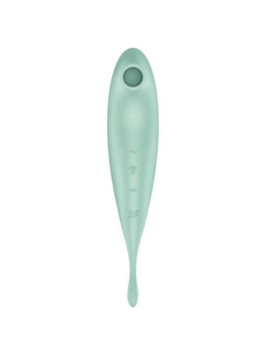 êtes-vous à la recherche d’un vrai tout-terrain ? Alors vous devriez connaître l'application Twirling Pro Connect : le vibrateur à ondes de pression contrôlé par l'application avec pointe de stimulation peut être utilisé des deux côtés et impressionne par 2 fonctions contrôlables séparément !Informations sur le produit "Satisfyer Twirling Pro+" Stimulation clitoridienne par ondes de pression et stimulation érogène par vibrations Compatible avec l'application gratuite Satisfyer - Disponible sur iOS et Android Fabriqué en silicone de qualité médicale super doux et respectueux de la peau, lisse au toucher et extrêmement hygiénique Grâce à son extérieur étanche (IPX7), cet appareil de bien-être sexuel peut être utilisé en toute sécurité dans l'eau et est facile à nettoyer. Garantie 15 ans 2 moteurs contrôlables séparément 11 intensités d'ondes de pulsation d'air + 12 programmes de vibrations Peut également être utilisé sans l'application Les programmes prédéfinis peuvent être modifiés L'application offre une gamme infinie de programmes Silicone respectueux du corps étanche (IPX7) Mode murmure Batterie aux ions lithium Câble de chargement magnétique USB inclus Facile à nettoyerUn plaisir infini avec le Satisfyer Twirling Pro+Le dessus du jouet agit comme un vibrateur à ondes de pression et dorlote votre clitoris avec des ondes de pression sensuelles dans 11 intensités prédéfinies. L'embout ovale situé à l'extrémité inférieure de la tige étroite est idéal pour une stimulation ciblée de tout le corps : utilisez l'embout de stimulation circulante pour stimuler toutes les zones érogènes, comme les perles de plaisir, les mamelons ou l'anus. Vous disposez de 12 programmes de vibrations, allant de doux à intense.La forme droite de la tige tient bien dans la main lors de l'utilisation. Le silicone soyeux et doux pour la peau du vibromasseur est particulièrement flexible et glisse doucement sur le corps. Grâce à sa finition étanche (IPX7), l'application Twirling Pro Connect est également un heureux compagnon sous la douche ou dans le bain. Laissez-vous chouchouter de toutes parts par cet amoureux.Il y a encore plus : le vibromasseur polyvalent est compatible avec l'application primée Satisfyer Connect et est donc disponible pour des moments encore plus personnels. Créez vos propres modèles de vibrations ou laissez-les danser sur votre corps au son de la musique via Spotify. Pour des moments encore plus excitants, vous pouvez simplement laisser le contrôle du jouet à votre partenaire via l'application. Préparez-vous à des moments orageux avec ce tout-terrain !