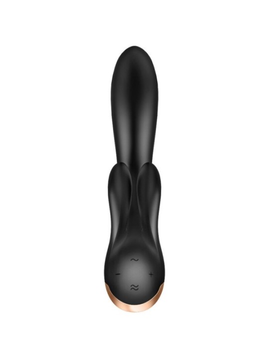 Doublez la flexibilité, doublez le plaisir ! Obtenez des vibrations épurées et puissantes qui épousent les contours de votre corps grâce à la technologie Silicone Flex intégrée au modèle innovant Double Flex de style lapin ! Informations sur le produit "Double Flex" Compatible avec l'application gratuite Satisfyer - Disponible sur iOS et Android 3 moteurs puissants transmettent des rythmes de vibrations intenses tout au long du jouet. Garantie 15 ans Peut également être utilisé sans l'application Les programmes prédéfinis peuvent être modifiés 3 moteurs haute puissance L'application offre une gamme infinie de programmes Stimulation du clitoris et du point G Mode murmure Silicone respectueux du corps Batterie Li-ion rechargeable étanche (IPX7) Câble de chargement USB magnétique inclus Facile à nettoyer Que peut faire le Satisfyer Double Flex ? Avec trois moteurs puissants, stimulez simultanément le clitoris, le point G et les lèvres. Avec un moteur dans chacune des petites tiges, expérimentez une stimulation plus large et plus intense, autour du clitoris ! Compatible Bluetooth, le Double Flex se connecte à l'application gratuite et primée Satisfyer Connect, vous donnant la possibilité de contrôler les moteurs puissants de manière indépendante et de véritablement personnaliser votre plaisir. Le Double Flex est fabriqué en silicone sans danger pour le corps, est rechargeable et étanche (IPX7). Flexez votre Double Flex !