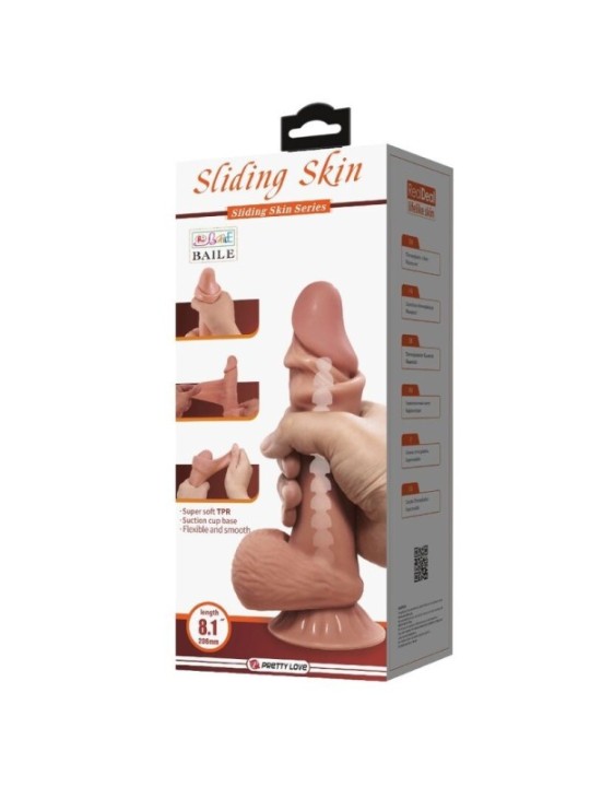 PRETTY LOVE - SÉRIE SLIDING SKIN GODE RÉALISTE AVEC VENTOUSE COULISSANTE PEAU BRUN 21,8 CM