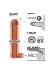 Transformez votre pénis en une machine à plaisir instantané avec les incroyables tensions Fantasy X. Maintenant, vous pouvez être tout l'homme que vous pouvez être et satisfaire votre partenaire avec ce stimulateur d'érection facile à utiliser. Développé comme une alternative sûre, abordable et non chirurgicale aux procédures médicales et aux pilules coûteuses, votre Fantasy X-tension vous donnera la tige de plaisir la plus grande, la plus épaisse et la plus satisfaisante que vous ayez jamais imaginée! Parfait pour les hommes ayant des problèmes de dysfonctionnement érectile et à mi-chemin, votre nouvel amplificateur offrira des résultats que les deux partenaires adoreront!Intensifiez le plaisir pour vous deux avec l'extension The Perfect 1 ? avec Ball Strap. Avec la sangle de balle bien ajustée autour de vous, vous prolongerez l'éjaculation pour le point culminant le plus explosif que vous ayez jamais imaginé. Votre partenaire profitera d'une pénétration plus profonde avec l'extension de 1 ? à la pointe, tandis que le manche ultra-réaliste vous rend 33% plus épais pour offrir une sensation plus complète et un point culminant exceptionnel. Il est super extensible pour s'adapter à la plupart des tailles, est suffisamment serré pour vous aider à durer plus longtemps et le matériau ultra-doux Fanta Flesh ressemble à une seconde peau - mais en mieux!Le nettoyage est un jeu d'enfant après le plaisir avec le nettoyant pour jouets inclus et l'eau chaude. Une taille convient à la plupart. Ce n'est pas un préservatif. + Extension de 1 ? (25 mm) + Ajoute 33% de circonférence + Chair Fanta ultra-réaliste + La sangle de balle prolonge l'éjaculation et maintient l'extension en place + Sans phtalates + Comprend une lotion pour le corps et un nettoyant pour jouets GRATUITS