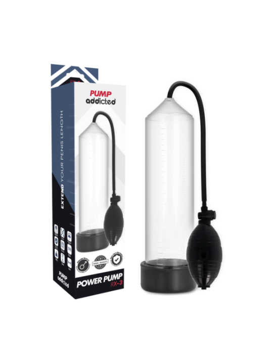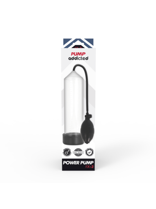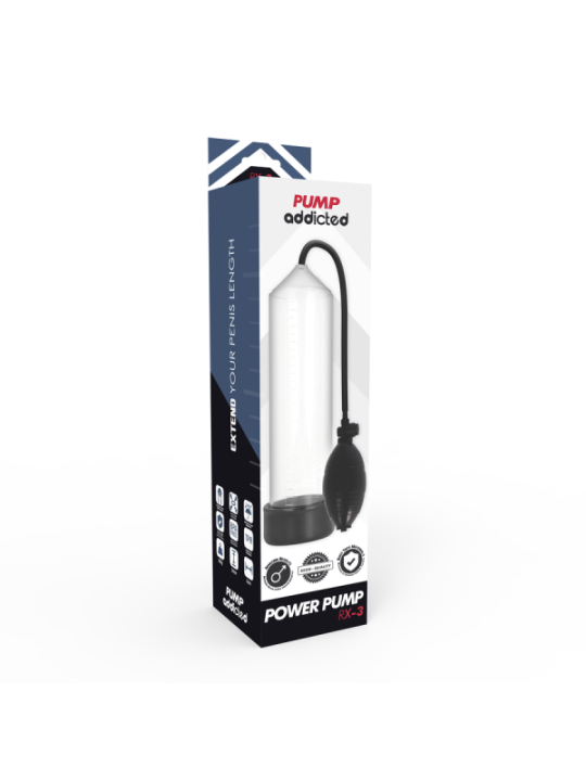 Toutes les pompes Pump Addicted sont là pour impressionner avec une fantastique variété d'appareils de croissance du pénis ! Pump addicted est le meilleur moyen d'améliorer vos performances sexuelles, votre taille et votre force. Nous avons envoyé des échantillons de produits à des hommes entre 25 et 55 ans ayant des problèmes d'érection ou simplement pour améliorer les performances et la taille du pénis. Les retours ont été 100% positifs, tous se sont avérés être le meilleur produit du marché. Pump Addicted permet d'obtenir une érection de manière plus simple grâce à un système de vide qui permet au sang de se concentrer dans le pénis lorsqu'il est encore flasque. L'érection est obtenue et maintenue par un joint confortable et hermétique à la base du corps, juste à la jonction du pénis avec le pubis, grâce auquel le sang est maintenu dans le tronc. Grâce au manchon, le joint est ferme, confortable et étroit sans compression. De plus, tous les produits Pump peuvent être combinés avec le lancement de la balle vibrante Pump pour augmenter la sensation de plaisir. Comme si cela ne suffisait pas, il peut également être combiné avec certains modèles de la série Pump le manchon manchon masturbadora plaisir sleeve, disponible en deux tailles, ce fabuleux accessoire transforme votre Pump Addicted préféré en masturbateur, mais si cela ne suffisait pas à faire le vide la taille du pénis est multipliée par 5 visuellement un effet optique vraiment attrayant lorsque vous utilisez Pump Les médecins considèrent que la pompe à pénis est un traitement efficace et économique contre la dysfonction érectile et ils déclarent que l’utilisation prolongée des appareils augmentera de façon permanente la taille du pénis. D’autres avantages de la variété PUMP ADDICTED sont, entre autres, le retard de l’éjaculation, l’amélioration de l’appétit sexuel, la production de testostérone, le maintien d’érections plus dures et plus durables et le soutien du tissu pénien après une chirurgie de la prostate. PUMP ADDICTED, vous donne des résultats instantanés ! Spécifications techniques de Pump Addicted RX3 ; Longueur insérable ; 23 cm Diamètre intérieur total ; 5,5 cm Matériau; ABS + Silicone Étanche Sans Phalatos