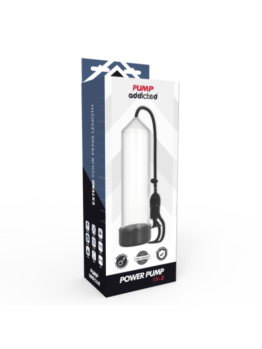 Toutes les pompes Pump Addicted sont là pour impressionner avec une fantastique variété d'appareils de croissance du pénis ! Pump addicted est le meilleur moyen d'améliorer vos performances sexuelles, votre taille et votre force. Nous avons envoyé des échantillons de produits à des hommes entre 25 et 55 ans ayant des problèmes d'érection ou simplement pour améliorer les performances et la taille du pénis. Les retours ont été 100% positifs, tous se sont avérés être le meilleur produit du marché. Pump Addicted permet d'obtenir une érection de manière plus simple grâce à un système de vide qui permet au sang de se concentrer dans le pénis lorsqu'il est encore flasque. L'érection est obtenue et maintenue par un joint confortable et hermétique à la base du corps, juste à la jonction du pénis avec le pubis, grâce auquel le sang est maintenu dans le tronc. Grâce au manchon, le joint est ferme, confortable et étroit sans compression. De plus, tous les produits Pump peuvent être combinés avec le lancement de la balle vibrante Pump pour augmenter la sensation de plaisir. Comme si cela ne suffisait pas, il peut également être combiné avec certains modèles de la série Pump le manchon manchon masturbadora plaisir sleeve, disponible en deux tailles, ce fabuleux accessoire transforme votre Pump Addicted préféré en masturbateur, mais si cela ne suffisait pas à faire le vide la taille du pénis est multipliée par 5 visuellement un effet optique vraiment attrayant lorsque vous utilisez Pump Les médecins considèrent que la pompe à pénis est un traitement efficace et économique contre la dysfonction érectile et ils déclarent que l’utilisation prolongée des appareils augmentera de façon permanente la taille du pénis. D’autres avantages de la variété PUMP ADDICTED sont, entre autres, le retard de l’éjaculation, l’amélioration de l’appétit sexuel, la production de testostérone, le maintien d’érections plus dures et plus durables et le soutien du tissu pénien après une chirurgie de la prostate. PUMP ADDICTED, vous donne des résultats instantanés ! Spécifications techniques de Pump Addicted RX3 ; Longueur insérable ; 23 cm Diamètre intérieur total ; 5,5 cm Matériau; ABS + Silicone Étanche Sans Phalatos