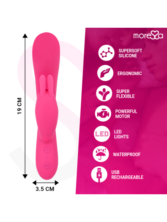 Telmo est un vibromasseur technologiquement supérieur, un lapin révolutionnaire, un design incurvé avec un stimulateur clitoridien doux et flexible. Fabriqué en silicone médical de haute qualité, le lapin est ergonomique, facile à utiliser et très puissant.Telmo vous accompagne pour le plaisir solitaire ou en compagnie. éLéGANT, un design étudié au toucher doux et soyeux enveloppé dans un silicone hypoallergénique velouté confortable. De la pointe à sa base il s'adapte naturellement à la température de votre corps. Forme incurvée qui stimulera le point G et le Clitoris avec un système de chatouilles (imaginez deux doigts massant en même temps) Avec ses 7 vitesses, vous pouvez passer d'une vibration douce et constante à la plus forte.De par sa taille, il est idéal pour vous accompagner dans vos déplacements, incroyablement silencieux et suffisamment discret pour être utilisé porte fermée sans être détecté.Luxe; Finition parfaite avec fixation métallique. 100 % silicone médical doux et soyeux. Il est hypoallergénique et 100 % respectueux de la peau Submersible 7 modes de vibrations Système de chatouillement clitoridien à 3 modes Sans phtalates Mesure totale ; 19,5X4cm Poids; 148 grammes Rechargeable par USB (câble inclus) Ergonomique Commande rétroéclairée avec lumières LEDPour allumer le vibreur, appuyez sur la touche bouton d'alimentation pendant environ 2 secondes. Puis appuyez sur la même touche pour modifier les 7 modes de vibrations.Appuyez sur la touche pour activer la fonction Chatouilles puis appuyez à nouveau sur la touche et modifiera les modes Chatouilles.Une fois Telmo terminé, appuyez sur la touche pendant 3 secondes et il s'éteindra.PorterLe vibromasseur est rechargeable et permet une manipulation confortable, sans câbles gênants. Avant de l'utiliser pour la première fois, vous devez le charger complètement. Utilisez le câble de chargement USB inclus pour ce faire.Insérez la fiche du câble USB dans le trou de connexion de charge. Branchez-le sur l'alimentation avec un connecteur ou sur l'ordinateur via USB. Attention : le premier processus de charge peut prendre jusqu'à huit heures. éliminationL'élimination des appareils électroniques doit être effectuée conformément à la réglementation sur les déchets dangereux en vigueur dans l'Union européenne et les autres pays européens ou selon les réglementations locales. Respecter les règles d'élimination des déchetsSpécifique à votre pays et en cas de doute, renseignez-vous auprès de votre revendeur sur les options d'élimination. Contenu L'ouverture d'une boîte de produits MORESSA est une exclusivité. La satisfaction est notre objectif, c'est pourquoi nous avons soigné chaque détail. TELMO Chargeur Manuel de l'UtilisateurMoressa est la marque de référence pour son design, sa qualité et sa technologie. Nous avons développé un produit innovant et pris soin de chaque processus de fabrication pour obtenir le meilleur résultat. Moressa est un symbole d'énergie, de force et de garantie. Acheter un Sextoy Moressa, c'est se sentir reflété dans l'actualité du jour. Chaque Moressa Toy vous transportera vers des sensations différentes. Un résultat inégalé grâce au silicone Premium confortable et aux designs ergonomiques.