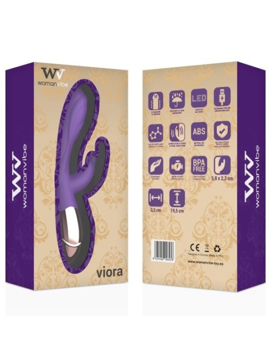 Womanvibe Viora, le vibromasseur Rabbit a un design unique qui en fait un vrai régal pour les yeux. Conception incurvée pour la stimulation du point G, stimulateur clitoridien pour lapin, soulagement qui procure un plaisir supplémentaire. Complètement élégant de couleur Or et Lilas, ce vibromasseur rechargeable est fait de silicone doux et soyeux qui respecte l'environnement, exempt de phalates et respectueux de votre peau. Des mesures; 19,5 x 3,3 cm + stimulateur de lapin 5,8 x 2,3 cm. Silencieux et discret Puissant 10 modes de vibration. Clés faciles à utiliser. Témoin de charge Matériaux qui n'irritent pas la peau Environ une heure de plaisir ininterrompu à la plus haute intensité Garantie 2 ans.Viora est une vibration intelligente! 10 modes de vibration de doux à fort transmettant de puissantes vibrations basse fréquence. Batterie 100% rechargeable.Viora est complètement submersible parfait pour une utilisation en spa ou douche.Un vibrateur élégant parfait pour le jeu avancé ou débutant.Mode d'emploi; Appuyez sur le bouton pendant 3 secondes. et il activera la vibration en mode 1, puis appuyez à nouveau pour passer par les 10 modes de vibration appétissants. presse pour réduire les modes de vibration. presse pendant au moins 3 secondes pour éteindre le vibreur.Indicateur lumineux; Lorsque le vibrateur fonctionne, vous verrez une lumière LED blanche sur le vibrateur. Lorsque le vibreur est éteint, aucune lumière LED ne reste allumée derrière les boutons. Lors de l'insertion du câble du chargeur, le vibreur aura une lumière LED blanche clignotante. Lorsque le vibreur est chargé, la lumière reste fixe.ChargeLe vibrateur est rechargeable et permet une manipulation confortable, sans câbles gênants. Avant de l'utiliser pour la première fois, vous devez le charger complètement. Utilisez le câble de chargement USB inclus pour cela. Insérez la fiche du câble USB dans le trou de connexion de charge. Branchez-le sur l'alimentation avec un connecteur ou sur l'ordinateur via USB. Pendant que le masseur est en charge, une lumière sera en mode intermittent, une fois la charge terminée, la lumière LED restera fixe.Attention : le premier processus de charge peut prendre jusqu'à cinq heures.Solution de problèmesEn cas d'erreurs ou de difficultés de manipulation liées au fonctionnement de Viora, appuyez sur le bouton d'alimentation pendant 5 secondes. Si le produit ne fonctionne toujours pas, veuillez contacter; service@womanvibe-toy.eséliminationLa mise au rebut des appareils électroniques doit être effectuée conformément aux réglementations relatives aux déchets dangereux en vigueur dans l'Union européenne et dans d'autres pays européens ou aux réglementations locales. Respectez les réglementations d'élimination des déchets spécifiques à votre pays et, en cas de doute, demandez à votre revendeur les options d'élimination.ContenuL'ouverture d'une boîte de produits Womanvibe est exclusive. Tous les produits comprennent une boîte de présentation de luxe sur fond d'or.à l'intérieur, vous trouverez Vibromasseur Viora chargeur USB