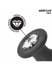 Le plug anal avec bijou Addicted Toys Large est un choix idéal pour ceux qui recherchent une expérience plus intense et plus satisfaisante. De plus grande taille que les versions S et M, ce plug offre une sensation profonde et complète tout en restant confortable et sécurisé. Sa base ornée d'un bijou décoratif lui confère une touche sophistiquée et attrayante, ce qui en fait un accessoire à la fois fonctionnel et esthétique.Caractéristiques du plug anal : Hauteur totale : 126 mm, offrant une expérience plus profonde et plus agréable. Largeur maximale : 49 mm, idéale pour ceux qui recherchent une plus grande expansion. Longueur insérable : 112 mm, permettant une pénétration plus intense et stimulante. épaisseur insérable : 39 mm, offrant une sensation de remplissage remarquable pour les utilisateurs plus expérimentés.Sa conception conique facilite une insertion progressive et contrôlée, tandis que sa base décorative en forme de bijou ajoute non seulement de l'élégance, mais garantit également un retrait sûr et en douceur.Matériau et conception :Ce plug est fabriqué en silicone médical de haute qualité, un matériau sans danger pour le corps, doux au toucher et facile à nettoyer. Sa texture lisse permet une insertion confortable, réduisant les frottements et augmentant la sensation de plaisir.Utilisation et plaisir :Idéal pour ceux qui souhaitent explorer la stimulation anale avec un niveau d'intensité plus élevé, ce plug est idéal pour jouer en solo ou en couple. Sa taille plus grande en fait un excellent choix pour ceux qui ont déjà de l'expérience avec les plugs anaux et qui souhaitent un défi plus stimulant.Recommandations :Il est recommandé d'utiliser un lubrifiant à base d'eau pour une insertion plus confortable et agréable. De plus, son matériau le rend facile à nettoyer, garantissant une bonne hygiène après chaque utilisation.