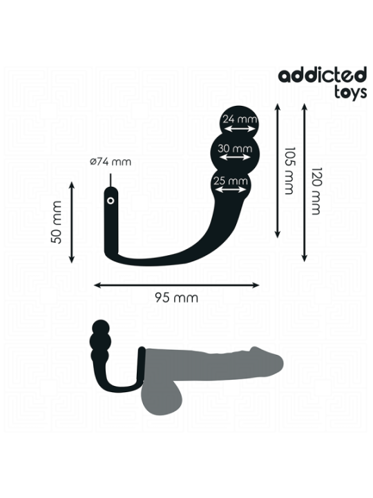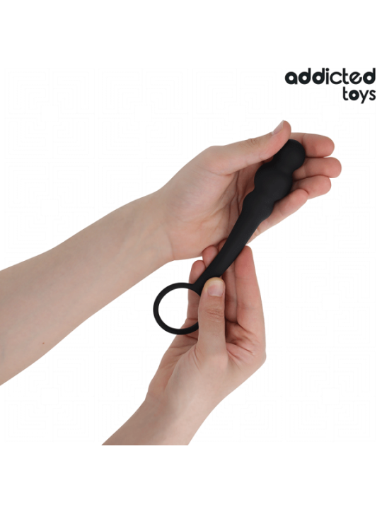 Le plug anal avec anneau modèle 1 d'Addicted Toys est une option conçue pour ceux qui recherchent une expérience de stimulation anale contrôlée, profonde et sûre, grâce à sa combinaison de plug et d'anneau. Cette conception innovante procure une sensation de plénitude tout en maintenant un contrôle supplémentaire sur la stimulation des testicules, améliorant le confort et l'intensité pendant l'utilisation.Caractéristiques du Plug Anal avec Anneau : Hauteur totale : 195 mm, offrant une taille adaptée à ceux qui recherchent une stimulation plus profonde et plus contrôlée. Hauteur extérieure de l'anneau : 150 mm, permettant une insertion confortable avec une base robuste pour un ajustement parfait. Longueur insérable : 70 mm, permettant une pénétration satisfaisante, sans être excessivement longue. épaisseur du fond : 25 mm, offrant une sensation de plénitude légère mais agréable. épaisseur intérieure : 30 mm, offrant une expansion progressive pour une expérience progressive et contrôlée. épaisseur supérieure : 24 mm, idéale pour ceux qui recherchent une sensation de stimulation profonde mais gérable.La conception de l'anneau permet de maintenir le plug en place pendant l'utilisation, améliorant ainsi la stabilité et empêchant le plug de glisser. De plus, l'anneau exerce une pression supplémentaire sur les testicules, ce qui peut augmenter la sensation de plaisir et de contrôle pendant la pratique anale.Matériau et conception :Fabriqué en silicone médical de haute qualité, ce plug est doux au toucher, flexible et sans danger pour le corps. Le silicone est hypoallergénique, facile à nettoyer et offre une expérience d'utilisation confortable et agréable.Utilisation et plaisir :Ce plug avec anneau est idéal pour ceux qui souhaitent explorer la stimulation anale avec un design qui ajoute un niveau de pression supplémentaire sur les testicules, offrant une expérience unique de contrôle et d'expansion. Sa forme et sa taille le rendent adapté aussi bien aux débutants qu'aux utilisateurs plus expérimentés, offrant un plaisir profond et contrôlé.Recommandations :Il est recommandé d'utiliser un lubrifiant à base d'eau pour une insertion plus confortable et plus douce. Après chaque utilisation, il est important de bien nettoyer le produit pour maintenir une bonne hygiène et assurer sa durabilité.