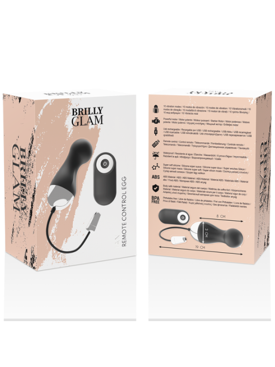 Ian ; Système de vibration innovant au design élégant inspiré des soirées élégantes. Ian est un œuf étonnant avec télécommande avec lequel vous pouvez choisir entre 10 vitesses et positions de vibration passionnantes, du buzz ludique aux modes orgasmiques.Son corps aux reliefs et sa surface douce sont idéaux aussi bien pour la stimulation vaginale que pour frotter votre clitoris, notamment en cas de fortes vibrations. Télécommande Moteur puissant Silicone antiallergénique USB rechargeable inclus 10 programmes de vibrations Imperméable Batterie aux ions lithium Facile à utiliser et facile à nettoyer. Il comprend 1 gel glissant Waterfeel Neutral 6 ml Il comprend 1 sac de voyage réutilisable gratuitProfitez du plaisir offert par Brilly Glam, 4 modèles exclusifs en noir avec détails argentés, élégants, puissants et exclusifs.Fabriqué en silicone doux et soyeux, sans phtalates et conforme à toutes les réglementations de l'Union européenne, conçu et fabriqué en Espagne.Ils sont rechargeables et comprennent un câble de chargement USB qui, avec seulement 2 heures de charge, sera complètement prêt pour une nouvelle expérience.Ils ont 10 modèles de vibrations. Chaque mode de vibration inspire une couleur qui sera rétroéclairée automatiquement dans la base argentée Brilly Glam.Les produits Brilli Glam Rechargeable via USB inclus. Convient au corps, sans phtalates 1 an de garantie.INFORMATION PRODUIT Longueur totale:19 cm Longueur insérable:8,2 cm Diamètres : 3 cm Poids : 45 gr Matériau : Silicone et ABS Couleur : Noir et argent étanche : Oui Batterie : rechargeable par USB