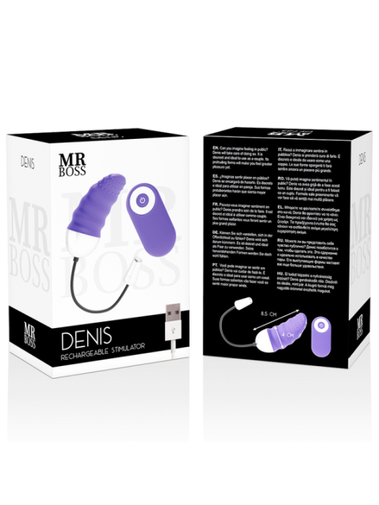 DENIS; Prenez le contrôle, système de vibration innovant avec un design élégant inspiré des soirées élégantes. DENIS est un incroyable ?uf télécommandé avec lequel vous pouvez choisir entre 10 vitesses et positions de vibration passionnantes, du bourdonnement ludique aux modes orgasmiques.Son corps surélevé et sa surface lisse sont idéales à la fois pour la stimulation vaginale et le frottement de votre clitoris, en particulier en mode de fortes vibrations.Forme incurvée pour une stimulation complète du point G. Moteur puissant Télécommande jusqu'à 15 mètres Silicone anti-allergène USB rechargeable inclus 10 programmes de vibration Resistant à l'eau Batterie aux ions lithium Facile à utiliser et facile à nettoyer.L'utilisation de lubrifiants Waterfeel est recommandée pour une expérience parfaite.Des designs modernes, ergonomiques et créatifs. MRBOSS une marque avec tous les standards de qualité des jouets érotiques haut de gamme.Présentation élégante pour un produit unique.Les formes et les courbes de chaque vibromasseur Mr Boss sont formidables et parfaitement conçues pour le corps pour procurer plaisir et plaisir.Dans cette fabuleuse collection, vous trouverez des vibrateurs pour le point G, les lapins, le cockring et l'?uf télécommandé. Tout ce qu'il faut pour offrir des moments de plaisir et de luxure.L'exclusivité et les matériaux de la plus haute qualité ainsi que les moteurs puissants et silencieux rendent ces jouets vraiment uniques. Jusqu'à 10 modèles de vibrations pour compléter la sensation de bien-être.MR BOSS est une marque de Luxe Premium adaptée à toutes les poches. Des débutants aux experts, MR BOSS sera toujours à la hauteur pour satisfaire la demande de nos clients avec de bonnes notes.INFORMATION PRODUIT: Longueur totale: 8,5 cm Longueur insérable: 8,5 cm Diamètres: 3,7 cm Poids: 50 gr Matériel: silicone et ABS Couleur: Lilas et argent Submersible: Oui Batterie: Oui, rechargeable par USB