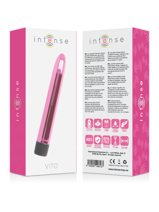 Vous êtes curieux de connaître un vibromasseur et souhaitez en essayer un de taille moyenne ? Alors les vibrateurs VITO sont votre meilleur ami ! Les vibrateurs VITO INTENSE sont doux, basiques et offrent de fortes vibrations des deux côtés ! Avec sa dimension robuste de 17 cm, vous pourrez emporter ces masseurs de voyage partout où vous allez. Parfait à vivre à tout moment et en tout lieu. Il est recommandé de l'utiliser avec un lubrifiant à base d'eau de la marque Waterfeel et de terminer avec un savon nettoyant à base d'eau et au pH neutre en plus d'utiliser le spray toycleaner Waterfeel qui complète le nettoyage extrême. Silencieux Matériel; abdos Puissant Alimenté par 2 piles AA, non incluses 17 centimètres de longueur x 2,5 cm de diamètre