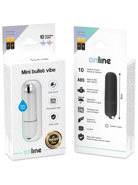 Petit, discret et puissant. Avec 10 modèles de vibrations différents, de doux et semblables à un massage à extrêmement fort. Ressentez la vibration EN LIGNE n'importe où avec ce mini vibromasseur bullet au toucher doux et au moteur puissantLaissez-nous vous montrer le chemin du plaisir et du plaisir et allez EN LIGNE !à propos de ce produit : Mini balle vibrante 10 modes de vibrations. Imperméable Sans Phalates Matériau sans danger pour le corps, testé dermatologiquement. Moteur puissant Matériau ABS Mesures; 6,2 x 1,9 cm. Poids; 21 grammes Utilise 3 piles LR44 incluses. 1 an de garantie.La marqueSi vous aimez être à jour, connecté au monde et vivre au courant et dans l'instant présent, vous êtes comme nous, vous êtes une personne EN LIGNE !