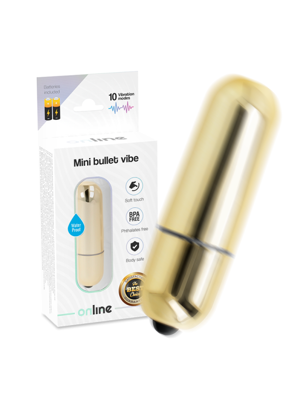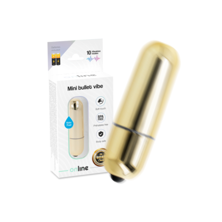 Petit, discret et puissant. Avec 10 modèles de vibrations différents, de doux et semblables à un massage à extrêmement fort. Ressentez la vibration EN LIGNE n'importe où avec ce mini vibromasseur bullet au toucher doux et au moteur puissantLaissez-nous vous montrer le chemin du plaisir et du plaisir et allez EN LIGNE !à propos de ce produit : Mini balle vibrante 10 modes de vibrations. Imperméable Sans Phalates Matériau sans danger pour le corps, testé dermatologiquement. Moteur puissant Matériau ABS Mesures; 6,2 x 1,9 cm. Poids; 21 grammes Utilise 3 piles LR44 incluses. 1 an de garantie.La marqueSi vous aimez être à jour, connecté au monde et vivre au courant et dans l'instant présent, vous êtes comme nous, vous êtes une personne EN LIGNE !