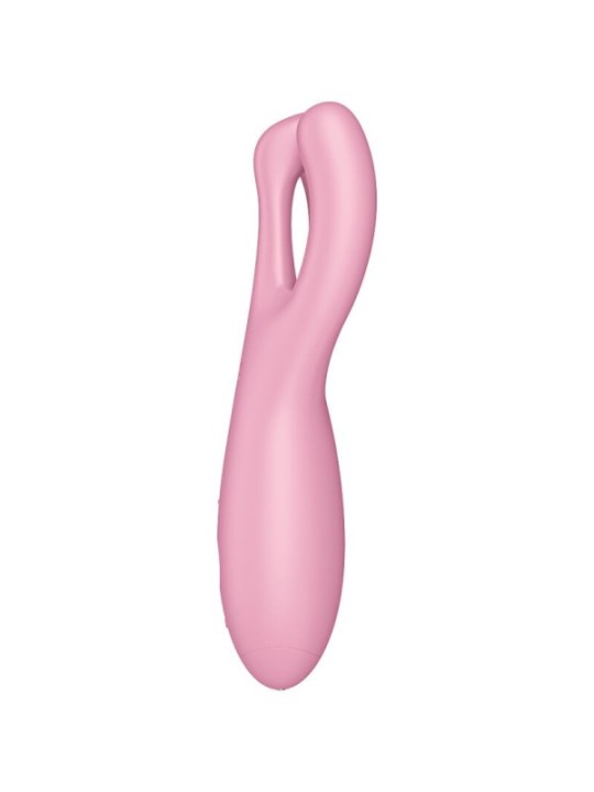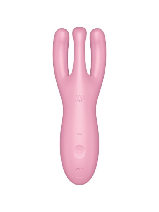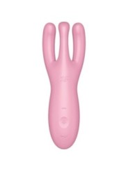 Satisfyer Threesome 4 possède trois bras, un moteur puissant et un design innovant. C'est un vibrateur de contact qui stimule le clitoris et les lèvres. Informations sur le produit Satisfyer "Trio 4" Stimulation sensuelle du clitoris et des lèvres Bras flexibles pour une stimulation passionnée 12 programmes de vibrations 3 moteurs puissants et super puissants Compatible avec l'application gratuite Satisfyer – disponible pour iOS et Android Mode murmure Fabriqué en silicone médical super doux et doux pour la peau avec un toucher soyeux Garantie 15 ans Cal peut également être utilisé sans l'application L'application offre une gamme infinie de programmes Batterie Li-ion rechargeable étanche (IPX7) Câble de chargement USB magnétique inclus Facile à nettoyer Que peut vous offrir d'autre le vibromasseur Satisfyer Threesome 4 ? Le corps rigide possède des bras flexibles qui peuvent être ajustés pour stimuler les bons endroits. Threesome 4 dispose de trois moteurs qui offrent des vibrations puissantes et profondes à l'utilisateur. 2 x 12 programmes de vibrations offrent d'innombrables façons de stimuler le clitoris et les lèvres. Avec l'application gratuite Connect, vous pouvez contrôler le vibromasseur dans le monde entier via Internet, associer l'appareil à votre playlist préférée sur Spotify ou créer vos propres programmes de vibrations et les transférer sur votre Satisfyer – les possibilités sont infinies ! Les 12 programmes de vibration prédéfinis sur le vibrateur peuvent être contrôlés intuitivement via le bouton même sans l'application.