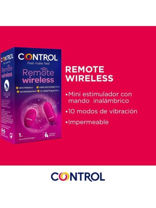 Le vibromasseur sans fil Control Remote est un stimulateur intime. Il est composé de deux parties, un masseur et une télécommande.Le Vibromasseur Sans Fil Control Remote vous permettra d'éprouver de nouvelles sensations et de réaliser vos fantasmes. Grâce à sa manette sans fil, vous pouvez jouer seul ou avec une autre personne à distance, en lui donnant le contrôle de vos moments les plus excitants.Il est petit et discret et peut être utilisé seul ou en couple pour rendre les moments intimes encore plus intrigants. De plus, le vibromasseur dispose de 10 niveaux d'intensité différents. Pour en profiter au maximum et avoir des sensations plus intenses, il est recommandé d'associer Remote Wireless à un gel Control.Fabriqué en plastique ABS et polyuréthane.COMMENT UTILISERAppuyez sur le bouton « + » de la télécommande pour démarrer la vibration. Réglez le niveau de vibration souhaité avec les boutons « +/- » de la télécommande. La vibration durera aussi longtemps que les piles incluses le permettent avant qu'elles ne s'épuisent. Pour arrêter les vibrations, appuyez à nouveau sur le bouton marche/arrêt de la télécommande. Nettoyez le masseur après chaque utilisation (voir les instructions de nettoyage).Peut être utilisé seul ou avec votre partenaire. Lorsqu’il est utilisé pendant les rapports sexuels, il n’offre aucune protection contre les maladies sexuellement transmissibles ou la grossesse.AVANTAGES Plaisir maximum 3h d'autonomie Hypoallergénique Silicone