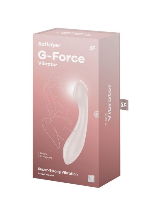 Satisfyer G-Force est un puissant expert en stimulation du point G. Le vibromasseur ravit par ses vibrations puissantes, sa pointe aplatie et ses délicieuses rainures. Vivez un maximum de plaisir avec Satisfyer G-Force , l'expert en stimulation du point G. Préparez-vous à un pur délice avec la pointe unique aplatie et striée et 50 combinaisons de vibrations fortes et surprenantes. Parfaite pour ceux qui découvrent le plaisir du point G ou pour les professionnels expérimentés : cette merveille en silicone est parfaite pour tout le monde. Sa forme ergonomique garantit une prise en main confortable et les 10 modèles de vibrations différents et 5 intensités satisfont toutes vos envies. La surface lisse et la pointe proéminente garantissent une insertion facile et une touche de lubrifiant à base d'eau peut vous faire passer au niveau supérieur. Atteignez facilement votre point G grâce à la forme incurvée, tandis que les crêtes délicates sur la tige ajoutent une excitation supplémentaire. Vous pouvez également utiliser l'embout aplati comme vibromasseur de plaisir en l'appliquant directement sur le clitoris. Ressentez sa force sous la douche ou dans le bain sans problème, puisque la finition étanche (IPX7) vous permet d'en profiter sous l'eau et le rend également facile à nettoyer. Utilisez simplement un peu de nettoyant pour appareils de plaisir sexuel ou de l’eau tiède avec du savon doux. Et quand il est temps de recharger, le câble de chargement USB inclus charge votre Satisfyer G-Force en un rien de temps pour qu'il soit toujours prêt à l'emploi. Prêt pour la prochaine aventure de plaisir. Que la force soit avec vous et votre point G ! CARACTéRISTIQUES: Stimulation du point G Moteur puissant Silicone respectueux du corps Résistant à l'eau (IPX7) 50 combinaisons de vibrations Facile à nettoyer Batterie aux ions lithium Câble de chargement magnétique USB inclus