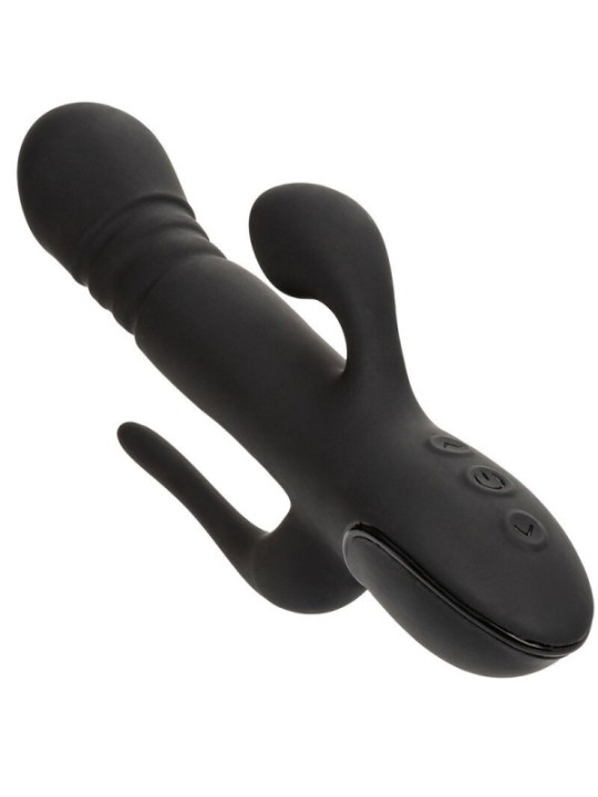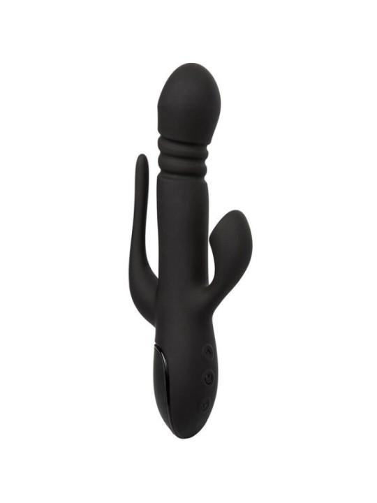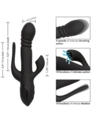 Offrez-vous vos fantasmes les plus fous avec le III Triple Euphoria, incroyablement puissant. Vivez un plaisir comme jamais auparavant avec le puissant masseur triple action rechargeable doté d'un puissant arbre de poussée, d'un stimulateur vibrant à porte dérobée et d'un stimulateur de succion clitoridienne. Le puissant triple masseur utilise 3 vitesses de poussée à travers la tige excitante pour provoquer le point G et une pénétration frémissante. Tandis qu'une fine queue clignote au rythme de 10 fonctions de vibration grondante. Offrez-vous une aspiration sensationnelle avec le teaser audacieux et 10 fonctions d'aspiration intime. Le triple pénétrateur audacieux offre une stimulation d'aspiration clitoridienne spectaculaire, tandis que la tige de poussée pénètre et la queue vibrante taquine avec des vibrations profondes et grondantes. Contrôlez et personnalisez votre jeu de plaisir avec des fonctions contrôlées indépendamment. Rechargez le masseur en 2,5 heures avec le câble de chargement USB inclus pour profiter de 30 minutes d'action à grande vitesse ou de 90 minutes de stimulation à basse vitesse. Profitez d'un contrôle sans frustration grâce au panneau de commande à 3 boutons facile à toucher et à la fonction de verrouillage de sécurité pour un plaisir en déplacement. Le corps pratiquement sans couture et le port de chargement auto-obturant signifient que vous pouvez emmener cet appareil étanche et polyvalent pour faire un plongeon. Le silicone de qualité supérieure est sans danger pour le corps, sans parfum et sans phtalates pour garder vos zones les plus sensibles heureuses et saines. CARACTéRISTIQUES: Masseur puissant à triple action avec moteurs situés sur la tige, le stimulateur et la queue 3 vitesses d'action de poussée sur l'arbre. 10 fonctions d'aspiration intime dans le stimulateur 10 fonctions de vibration, de pulsation et de montée de queue Silicone sans danger pour le corps et 100 % étanche. Axe et stimulateurs fonctionnant indépendamment La puce mémoire de dernière génération reprend avec la dernière fonction utilisée Fonction de verrouillage de sécurité de voyage : appuyez et maintenez enfoncé pendant 3 secondes pour allumer ou éteindre Rechargeable par USB : câble de chargement inclus Charge complète en 2,5 heures Fonctionne pendant 30 minutes à haute vitesse et 90 minutes à basse vitesse. Dimensions : axe 14 x 3,75 cm | Stimulateur 4,5 x 2,5 cm | Queue de 7,5 x 0,75 cm CalExotics transforme progressivement « le fantasme en réalité » depuis plus d’une décennie. Avec une attention inégalée aux détails, la fondatrice et propriétaire de CalExotics, Susan Colvin, a fait de la marque California Exotic Nouveauté synonyme de jouets pour adultes de qualité. Le fait que CalExotics soit une entreprise détenue et exploitée par des femmes joue un rôle majeur dans son ascension fulgurante au sommet de l'industrie des jouets et des nouveautés pour adultes. .