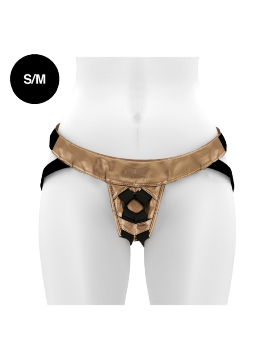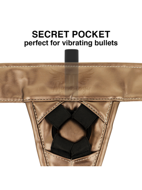 HARNAIS FANTAISIE MYTHOLOGIE - HARNAIS BRONZE S/M Un harnais confortable pour des godes uniques. Le sexe Strapon est génial. Sentez-vous bien pendant que vous le faites avec ce harnais élégant et durable. QU'EST-CE QUI REND LE HARNAIS MYTHOLOGIQUE SPéCIAL ? L'attacher est incroyable, et ce harnais le rend encore meilleur. Le harnais Fantasy est un harnais 100% européen fabriqué à la main avec des matériaux écologiques, ce qui le rend 100% végétalien et facile à nettoyer. La ceinture de hanche large et confortable et les deux sangles de jambe sont réglables pour que vous puissiez gérer votre confort et votre contrôle. Parce qu'il maintient si bien votre gode en place, vous pouvez essayer en toute confiance n'importe quelle nouvelle position de votre choix. MON GODE EST-IL INTéRESSé DANS CE HARNAIS AVEC SANGLE RéGLABLE ? Probablement oui! Le harnais Mythologic Fantasy s'adapte à n'importe quel gode d'un diamètre allant jusqu'à 5 cm (comprend deux anneaux intérieurs flexibles de 4 et 5 cm respectivement) à condition qu'il possède une base. Bien entendu, nous vous recommandons de l'essayer avec l'un de nos godes MYTHOLOGIQUES, puisque leurs bases vous permettront de vous rapprocher plus que jamais. LE HARNAIS M'ADAPTERA-T-IL BIEN ? Ce harnais réglable convient aux tailles 34 à 46, vous devez choisir la taille S/MOL/XL avec soin. La ceinture et les sangles de fesses peuvent être ajustées indépendamment afin que vous puissiez l'adapter à votre corps. COMMENT PUIS-JE LE NETTOYER ? Un avantage de ce matériau par rapport au cuir est qu’il est très facile à nettoyer. Il suffit de le laver avec de l'eau et du savon à lessive, soit à la main, soit dans un sac à linge lors du lavage. Les harnais mythologiques vous laisseront sans voix. La combinaison parfaite de matériaux innovants, de confort et de design polyvalent. Ces bretelles sont disponibles en deux tailles : S/M et L/XL. Nous avons choisi ces mesures pour qu'elles conviennent à toutes les morphologies. Ils sont réglables à la taille par velcro et sur leurs élastiques par boucles. La conception du harnais a été pensée pour qu'il puisse être utilisé dans plusieurs positions non conventionnelles : sur le genou, le coude, la poitrine... Nous sommes sûrs que ces harnais ne passeront pas inaperçus auprès des clients. Ces dernières années, nous avons constaté une augmentation significative des ventes de ce type d’articles. Vous pouvez les combiner comme bon vous semble, tous les godes Mythology sont compatibles avec ces incroyables harnais. Nous avons actuellement deux résiliations différentes ; un de couleur cuivre, qui se mariera parfaitement avec Rune - Royal et un autre de finition irisée (il change de couleur en fonction de l'angle de vue et de la lumière incidente). Un véritable bijou pour les amateurs de fétichisme et de pegging. NOUS AVONS PENSé à TOUT Le harnais a une bande élastique sur les côtés qui peut être utilisée pour placer la télécommande « Watchme », une bouteille de lubrifiant, d'huile ou tout ce que vous préférez. Cet élastique est placé à hauteur de hanches, de part et d'autre du corps afin que les droitiers comme les gauchers puissent l'utiliser confortablement. Et il a aussi un secret à l’intérieur ! Derrière la zone de fixation de la « sangle » se trouve une petite poche secrète, de taille idéale pour y insérer une balle vibrante, afin que vous puissiez profiter d'une stimulation supplémentaire. Le gode est maintenu en place par deux anneaux flexibles. Nous vous promettons une prise en main solide et confortable. Qu'attendez-vous pour vous procurer l'un de ces superbes harnais ? MYTHOLOGY se compose d'une gamme de godes, tous fabriqués en silicone haut de gamme, disponibles en deux versions (avec vibration et sans vibration) et différentes tailles (S, M, L). La version avec vibration, rechargeable, compatible avec la technologie Watchme.