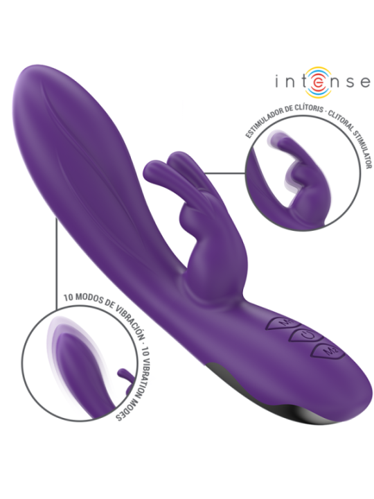 RANDALL de INTENSE est un vibromasseur rabbit conçu pour maximiser le plaisir et offrir une expérience unique dans vos moments intimes.D'une jolie couleur violette , ce vibromasseur dispose de 10 modes de vibration , vous permettant d'explorer une grande variété de sensations et de trouver celle qui vous excite le plus. Conception ergonomique et puissante :Avec son design rabbit classique, il s'adapte parfaitement à l'anatomie féminine, offrant une stimulation interne et externe. Son moteur puissant assure des vibrations intenses qui élèvent le plaisir vers de nouveaux sommets.Matériau sans danger pour le corps :Fabriqué en silicone ABS de haute qualité, il est totalement sûr pour le corps, sans phtalates. Sa texture douce garantit confort et plaisir à chaque utilisation, s'adaptant aux préférences de chaque utilisateur.Résistant à l'eau et avec chargeur magnétique :Ce vibromasseur est conçu pour être résistant à l'eau, idéal pour profiter sous la douche ou dans la baignoire sans soucis. De plus, il se recharge facilement grâce à son chargeur magnétique pratique, vous permettant de le garder toujours prêt pour vos moments de plaisir. Le vibrateur rabbit RANDALL d'INTENSE est le choix idéal pour ceux qui recherchent une expérience de stimulation complète et personnalisable, alliant design élégant, puissance et confort.Découvrez un nouveau niveau de plaisir avec RANDALL !