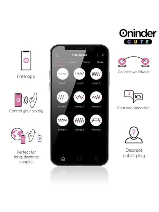 Vibromasseur lapin ONINDER avec stimulateur – Puissance, douceur et contrôle par applicationProfitez d'une stimulation complète avec le nouveau vibromasseur de la collection ONINDER CUTE, conçu pour vous offrir un plaisir immersif grâce à son moteur puissant et son stimulateur clitoridien de type lapin. Avec un design ergonomique et une connectivité à l'application officielle ONINDER, ce jouet deviendra votre meilleur allié pour un plaisir personnalisé.Design élégant et ergonomiqueCe vibromasseur se distingue par sa délicate couleur rose clair avec une base bleu foncé, créant un contraste attrayant et sophistiqué. Avec des dimensions de 14,5 cm de longueur totale et 3 cm de diamètre, sa taille est idéale pour une expérience intense sans être trop grande. Sa forme incurvée et son bras stimulateur clitoridien de style lapin sont conçus pour fournir une double stimulation simultanée, portant le plaisir à un autre niveau.Vibrations intelligentes et personnalisation avec l'applicationCe vibromasseur intègre un moteur puissant avec 9 modes de vibration, mais son véritable potentiel est débloqué avec l'application officielle ONINDER , vous permettant de : Télécommande, idéale pour jouer en couple ou en solo. Créez des motifs personnalisés, en ajustant l'intensité et le rythme selon vos préférences. Synchronisation avec la musique ou les sons, pour une expérience multisensorielle unique.Double stimulation pour un plaisir maximalLa conception comprend un bras flexible en forme de lapin, qui stimule le clitoris tandis que la vibration interne agit pour procurer des sensations intenses et profondes. Grâce à son moteur puissant et silencieux, vous pourrez profiter de moments de plaisir en toute discrétion.Matériau de qualité supérieure et nettoyage facileFabriqué en silicone ultra-doux de qualité médicale, ce vibromasseur est hypoallergénique, sans danger pour le corps et sans phtalate. Sa texture veloutée garantit une expérience agréable et son matériau non poreux rend le nettoyage rapide et facile.Rechargeable, étanche et prêt à l'emploiGrâce à sa batterie rechargeable par USB, vous pouvez oublier les piles et profiter d'une autonomie prolongée. De plus, sa résistance à l'eau le rend idéal pour une utilisation sous la douche ou dans le bain, ajoutant un plaisir supplémentaire à vos moments de plaisir.Caractéristiques principales : Dimensions : 14,5 cm de longueur totale et 3 cm de diamètre Collection : ONINDER CUTE Moteur puissant avec 9 modes de vibration Double stimulation avec bras de lapin pour le clitoris Compatibilité avec l'application officielle ONINDER pour un contrôle complet Silicone ultra-doux de qualité médicale Rechargeable par USB et longue durée Résistant à l'eau et facile à nettoyer Couleurs vives : Rose clair avec une base bleu foncéVivez un plaisir total avec le vibromasseur ONINDER CUTE , qui allie puissance, connectivité et design ergonomique pour vous offrir des moments inoubliables. APPLICATION ONINDERDébloquez de nouvelles fonctionnalités de contrôle des jouets avec l'application ONINDER . Appuyez sur l’écran de votre smartphone pour modifier les paramètres de vibration et d’intensité, même à distance.Boostez votre jeu avec l'application ONINDER et tirez le meilleur parti de votre jouet ONINDER.Avec ce vibromasseur, vous pouvez non seulement choisir parmi des combinaisons d'intensité et de vibrations prédéfinies, mais vous pouvez également partager un contrôle innovant basé sur une application. Téléchargez simplement l'application gratuite ONINDER sur votre appareil Android ou iOS et connectez votre smartphone ou votre tablette.Partagez votre plaisir avec d’autres utilisateurs du monde entier. Vivez la vibration au rythme de votre playlist Spotify préférée directement sur votre ONINDER ; Votre créativité n'a plus de limites grâce à cette application de contrôle à distance. Vous pouvez également permettre à votre partenaire de prendre le contrôle ou de contrôler ONINDER auprès d'autres utilisateurs via le réseau social.Vivez des aventures inattendues et aventurez-vous dans des mondes numériques entièrement nouveaux dans l'application ONINDER . L'application est évidemment conforme au RGPD et à toutes les réglementations européennes en matière de protection des données. De cette façon, vous pouvez vous détendre complètement et amener votre vie sexuelle à un nouveau niveau. Qu'attendez-vous ? Quelques heures de plaisir passionnant vous attendent. Moteur puissant Possibilité de l'utiliser également sans application Variété infinie de programmes de vibrations grâce à l'application étanche (IPX7) Batterie lithium-ion (chargeur USB inclus) Silicone médical souple. Garantie de 2 ansPourquoi choisir ONINDER ?Trouvez l'amour avec la personne qui vous convient vraiment ou augmentez votre confiance en tant que couple en jouant à la télécommande avec les jouets ONINDER . ONINDER, qu'est-ce que c'est et comment ça marcheEn bref, ONINDER est une application qui permet aux utilisateurs de se connecter avec d’autres profils en ligne pour se faire des amis, élargir leur liste de contacts dans le monde entier et même trouver des partenaires temporaires ou permanents.ONINDER est une application qui vous permet de jouer sexuellement avec des personnes du monde entier ou d'accroître la confiance dans votre relation, ainsi qu'un service de rencontres en ligne initialement développé en Europe pour le marché européen. Nous sommes toutefois confiants dans sa popularité et son expansion dans d’autres pays du continent européen. Ce service en ligne est actuellement disponible dans différentes régions du monde, notamment en Amérique latine et bientôt en Asie.Comment ça marcheCréez un profil sur ONINDER et rejoignez un club privé gratuit.L'inscription gratuite est une pratique courante pour les applications de rencontres car elle profite à la fois 