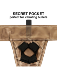 HARNAIS FANTAISIE MYTHOLOGIE - HARNAIS BRONZE L/XL Un harnais confortable pour des godes uniques. Le sexe Strapon est génial. Sentez-vous bien pendant que vous le faites avec ce harnais élégant et durable. QU'EST-CE QUI REND LE HARNAIS MYTHOLOGIQUE SPéCIAL ? L'attacher est incroyable, et ce harnais le rend encore meilleur. Le harnais Fantasy est un harnais 100% européen fabriqué à la main avec des matériaux écologiques, ce qui le rend 100% végétalien et facile à nettoyer. La ceinture de hanche large et confortable et les deux sangles de jambe sont réglables pour que vous puissiez gérer votre confort et votre contrôle. Parce qu'il maintient si bien votre gode en place, vous pouvez essayer en toute confiance n'importe quelle nouvelle position de votre choix. MON GODE EST-IL INTéRESSé DANS CE HARNAIS AVEC SANGLE RéGLABLE ? Probablement oui! Le harnais Mythologic Fantasy s'adapte à n'importe quel gode d'un diamètre allant jusqu'à 5 cm (comprend deux anneaux intérieurs flexibles de 4 et 5 cm respectivement) à condition qu'il possède une base. Bien entendu, nous vous recommandons de l'essayer avec l'un de nos godes MYTHOLOGIQUES, puisque leurs bases vous permettront de vous rapprocher plus que jamais. LE HARNAIS M'ADAPTERA-T-IL BIEN ? Ce harnais réglable convient aux tailles 34 à 46, vous devez choisir la taille S/MOL/XL avec soin. La ceinture et les sangles de fesses peuvent être ajustées indépendamment afin que vous puissiez l'adapter à votre corps. COMMENT PUIS-JE LE NETTOYER ? Un avantage de ce matériau par rapport au cuir est qu’il est très facile à nettoyer. Il suffit de le laver avec de l'eau et du savon à lessive, soit à la main, soit dans un sac à linge lors du lavage. Les harnais mythologiques vous laisseront sans voix. La combinaison parfaite de matériaux innovants, de confort et de design polyvalent. Ces bretelles sont disponibles en deux tailles : S/M et L/XL. Nous avons choisi ces mesures pour qu'elles conviennent à toutes les morphologies. Ils sont réglables à la taille par velcro et sur leurs élastiques par boucles. La conception du harnais a été pensée pour qu'il puisse être utilisé dans plusieurs positions non conventionnelles : sur le genou, le coude, la poitrine... Nous sommes sûrs que ces harnais ne passeront pas inaperçus auprès des clients. Ces dernières années, nous avons constaté une augmentation significative des ventes de ce type d’articles. Vous pouvez les combiner comme bon vous semble, tous les godes Mythology sont compatibles avec ces incroyables harnais. Nous avons actuellement deux résiliations différentes ; un de couleur cuivre, qui se mariera parfaitement avec Rune - Royal et un autre de finition irisée (il change de couleur en fonction de l'angle de vue et de la lumière incidente). Un véritable bijou pour les amateurs de fétichisme et de pegging. NOUS AVONS PENSé à TOUT Le harnais a une bande élastique sur les côtés qui peut être utilisée pour placer la télécommande « Watchme », une bouteille de lubrifiant, d'huile ou tout ce que vous préférez. Cet élastique est placé à hauteur de hanches, de part et d'autre du corps afin que les droitiers comme les gauchers puissent l'utiliser confortablement. Et il a aussi un secret à l’intérieur ! Derrière la zone de fixation de la « sangle » se trouve une petite poche secrète, de taille idéale pour y insérer une balle vibrante, afin que vous puissiez profiter d'une stimulation supplémentaire. Le gode est maintenu en place par deux anneaux flexibles. Nous vous promettons une prise en main solide et confortable. Qu'attendez-vous pour vous procurer l'un de ces superbes harnais ? MYTHOLOGY se compose d'une gamme de godes, tous fabriqués en silicone haut de gamme, disponibles en deux versions (avec vibration et sans vibration) et différentes tailles (S, M, L). La version avec vibration, rechargeable, compatible avec la technologie Watchme.